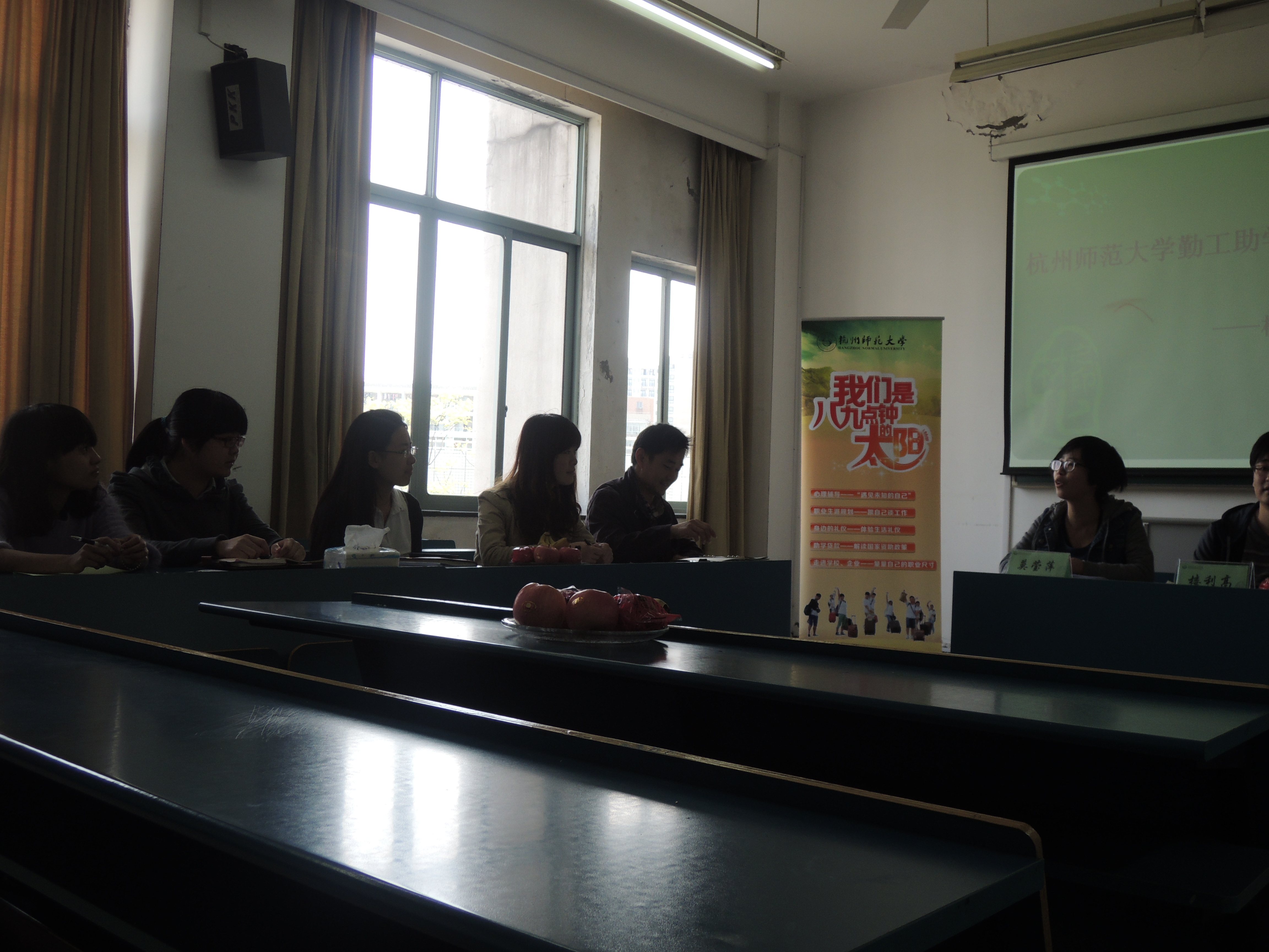 团委辅导员潘玉银老师、白芸老师,教育科学学院教科办主任楼利高老师,学生勤工助学中心副主任莫莹萍,学院勤工的部分委员以及贫困生代表。