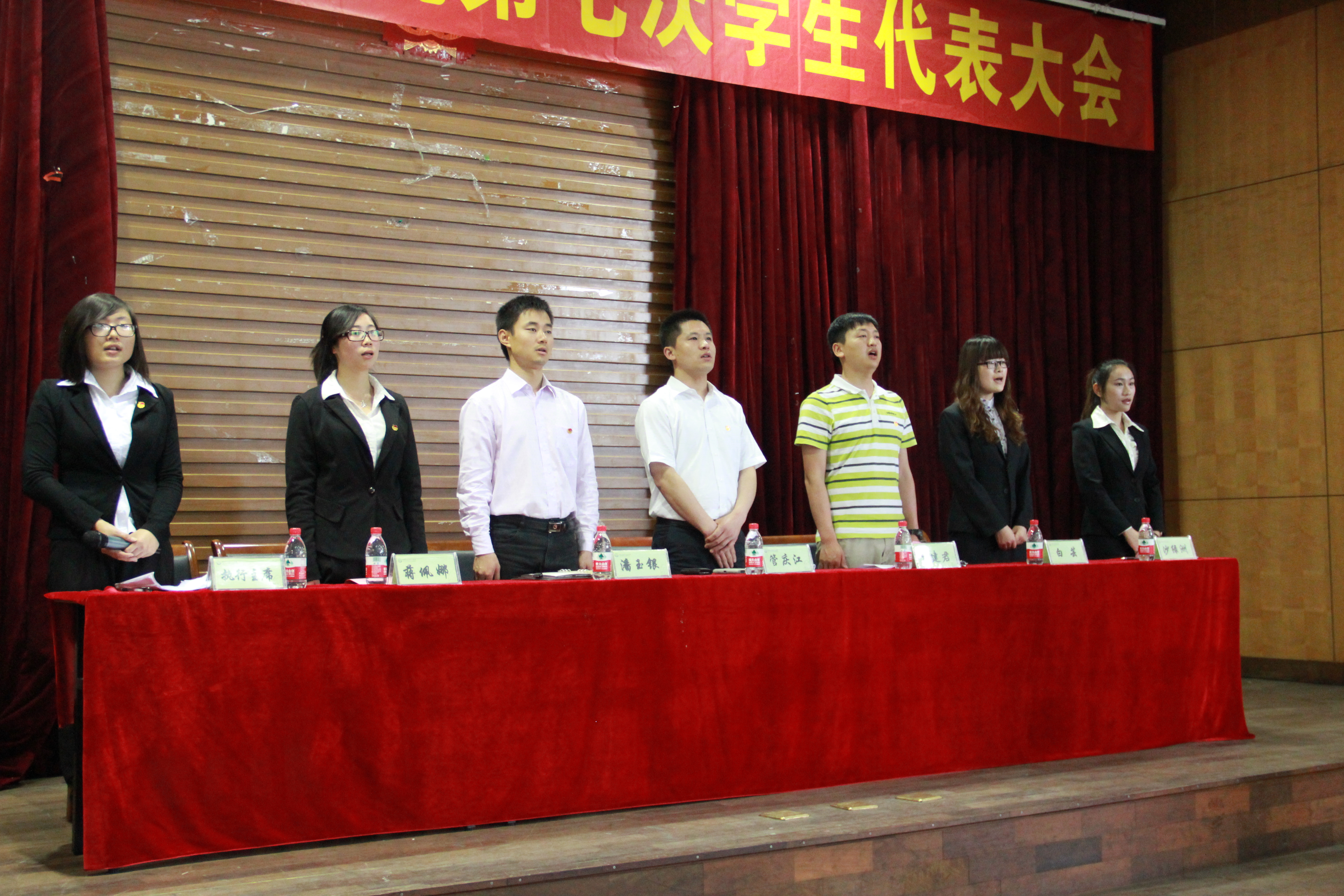 第七次学生代表大会于2013年5月15日在模拟法庭举行。校团委文体部部长兼校学生会秘书长生建君老师,校学生会副主席兼办公室主任沙绿洲同学,人文学院分团委书记陈飞老师,我院团委书记管庆江老师,副书记白芸老师、潘玉银老师,各兄弟学院学生会主席和jdb电子