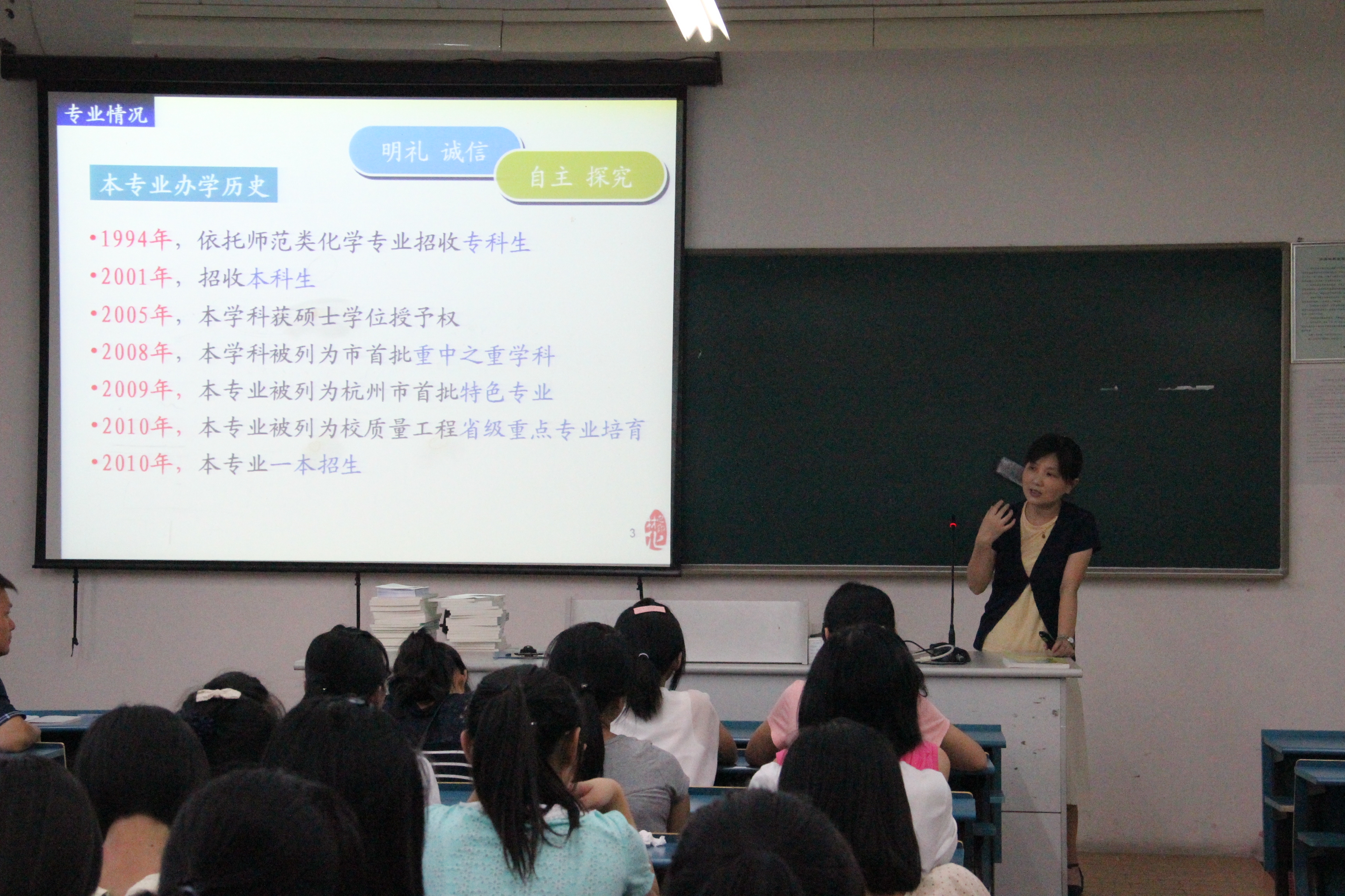 四位专业老师分别就化学、应用化学、高分子材料与工程、制药工程等四个专业向2013级新生们详细讲解了本专业的实际应用、专业发展概况、专业课程特色、专业发展前景及jdb电子