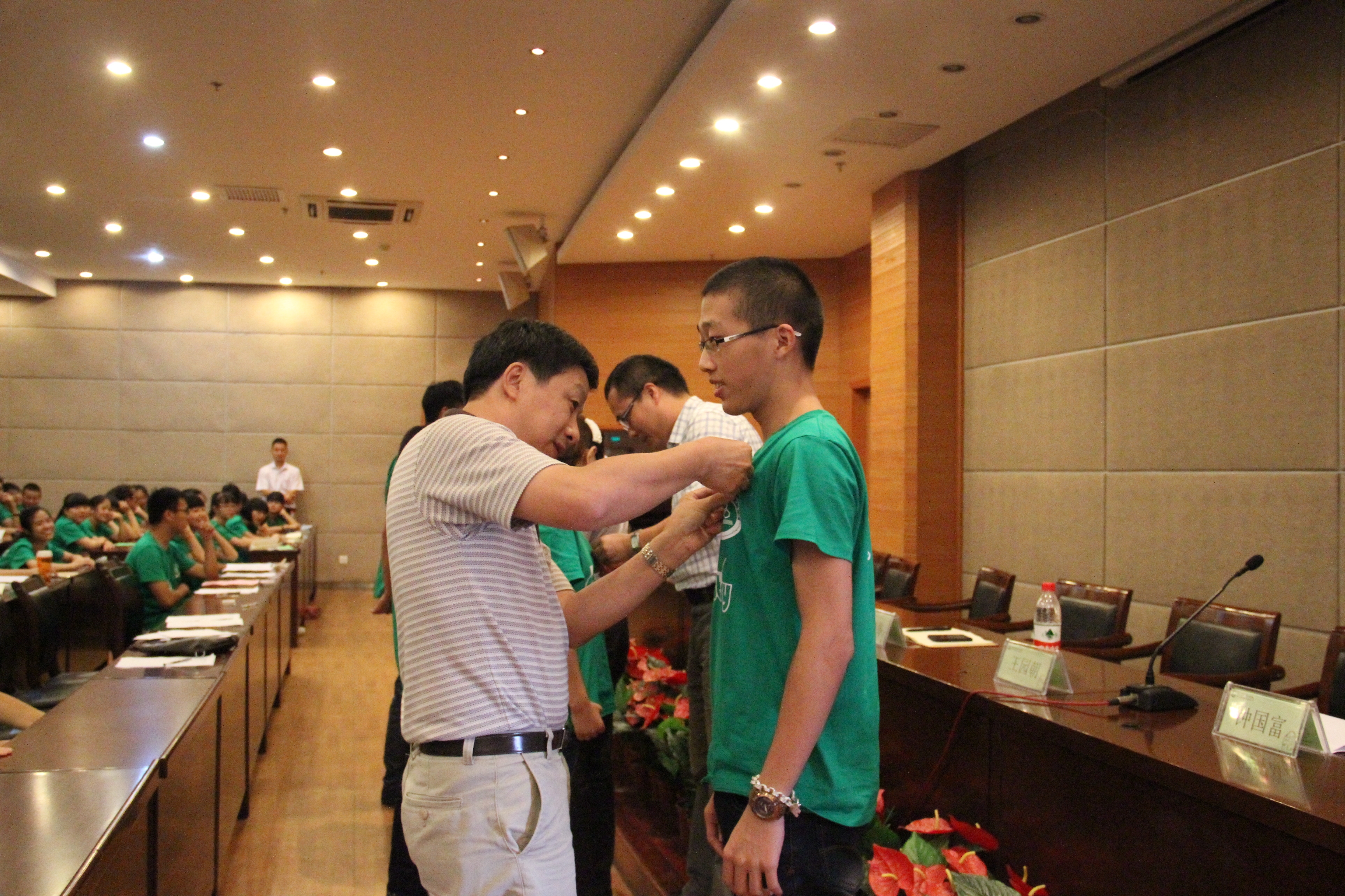 领导和老师为新生代表佩戴校徽