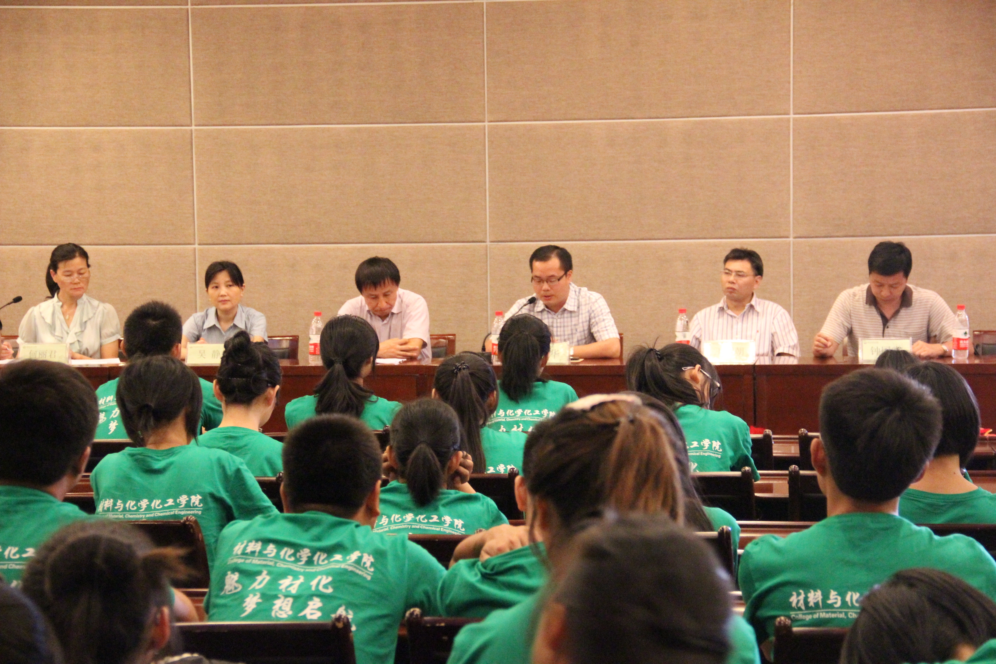 执行院长邱化玉、学院党委书记胡绍华、副院长吴静、学院党委副书记何丽君、副院长王园朝、教师代表钟国富、综合办公室主任余荣、教务科科长丁琰、学院教务科老师李晓霞应邀出席了开学典礼,参加典礼的还有新生班主任、辅导员以及全体本科新生和研究生新生。何书记主持了本次的开学典礼。