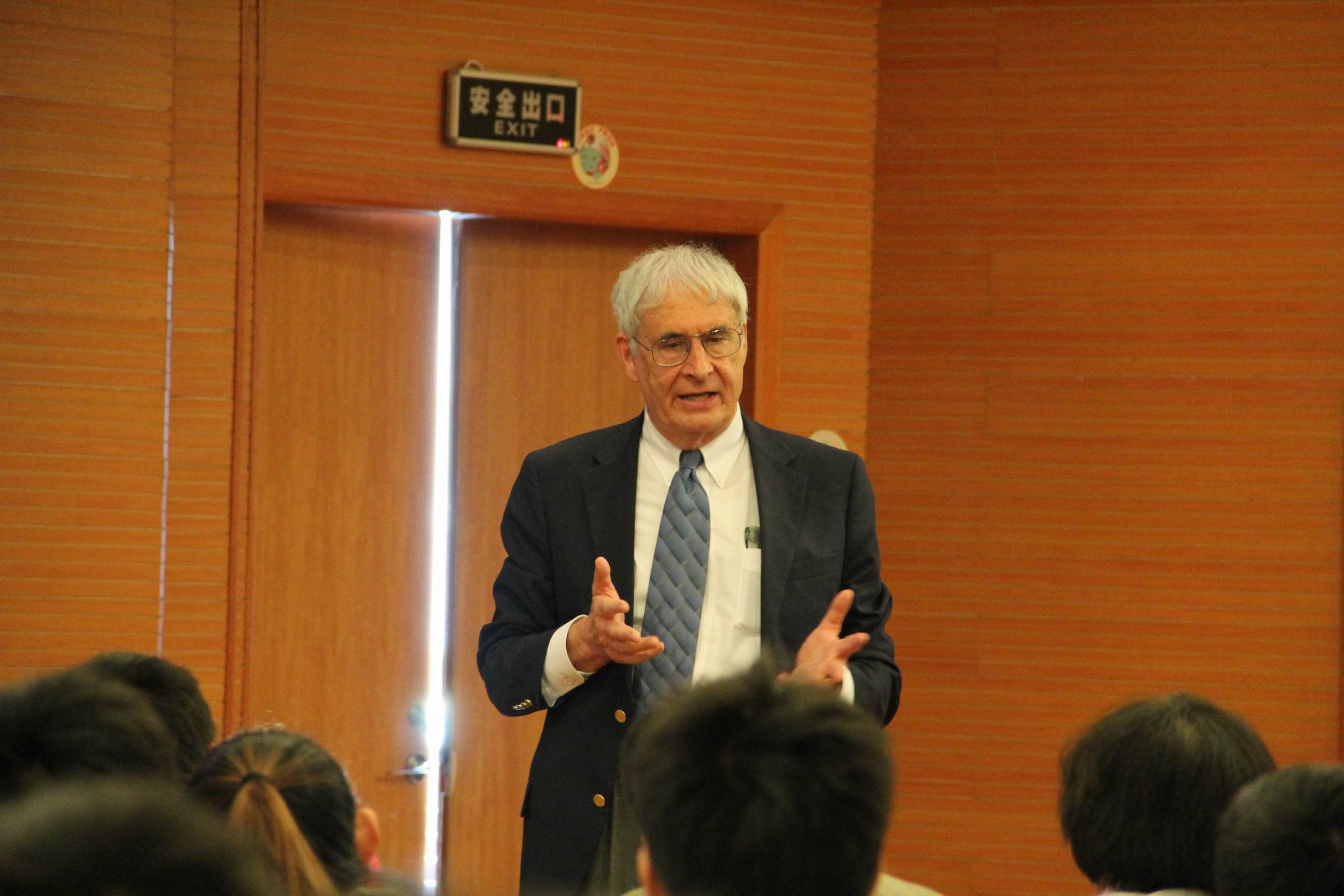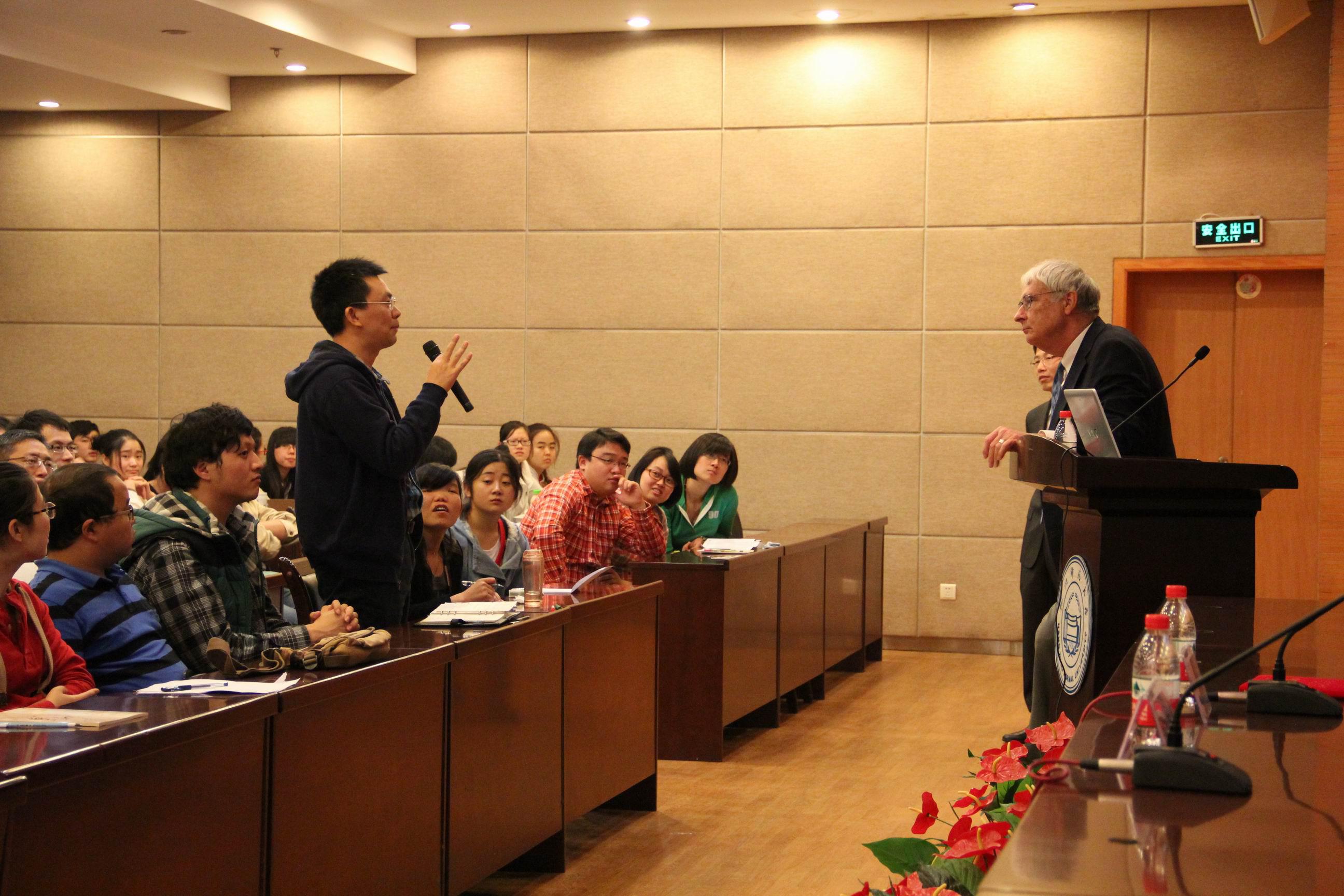 和“手性分子合成组装及应用”教育部创新团队邀请,美国科学院院士、美国艺术与科学院院士、中国科学院外籍院士、犹他大学杰出教授、《美国化学会志》(JACS)主编Peter J. Stang教授于2013年10月29日莅临我校讲学,并受聘我校“荣誉教授”。