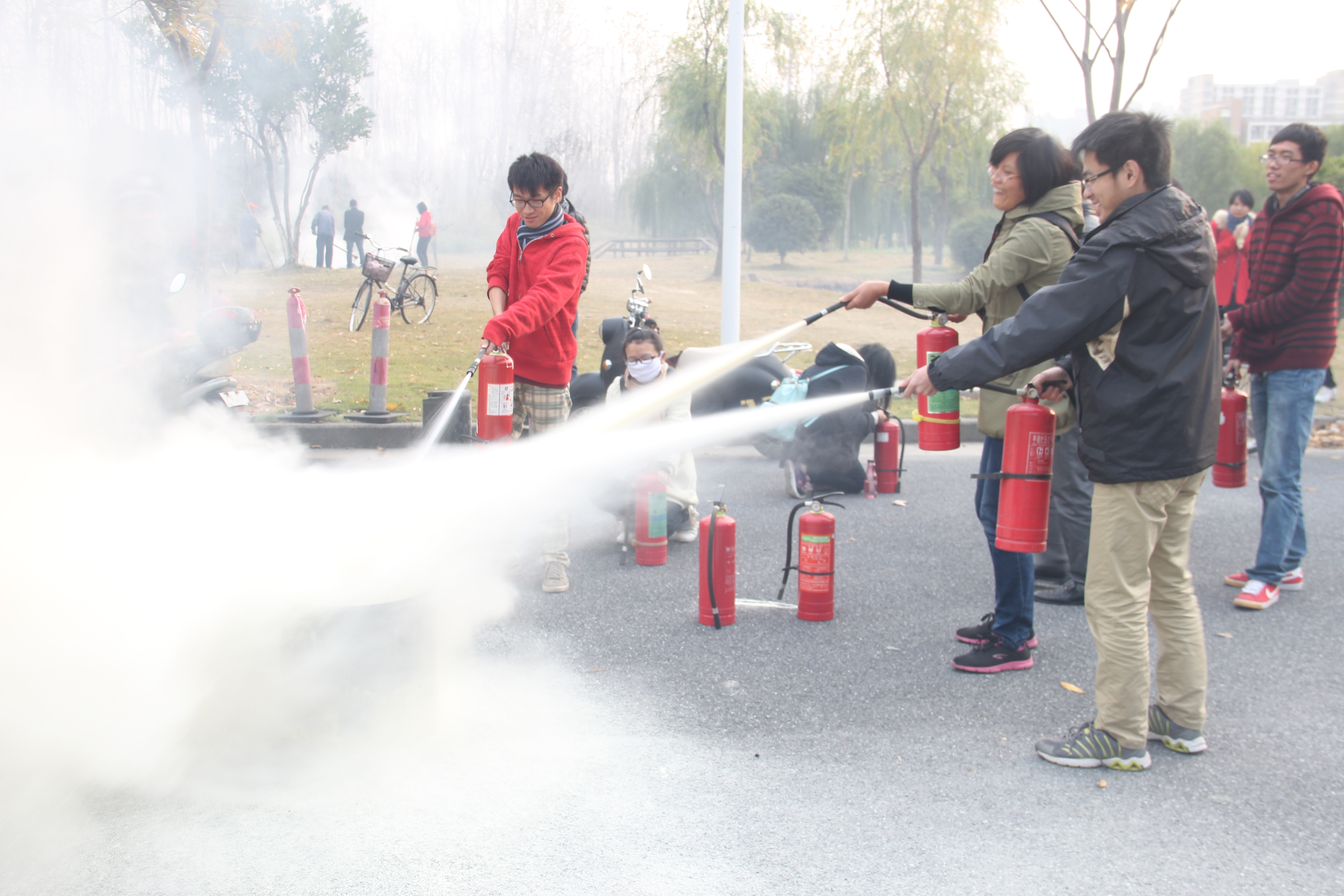 学生进行消防演习
