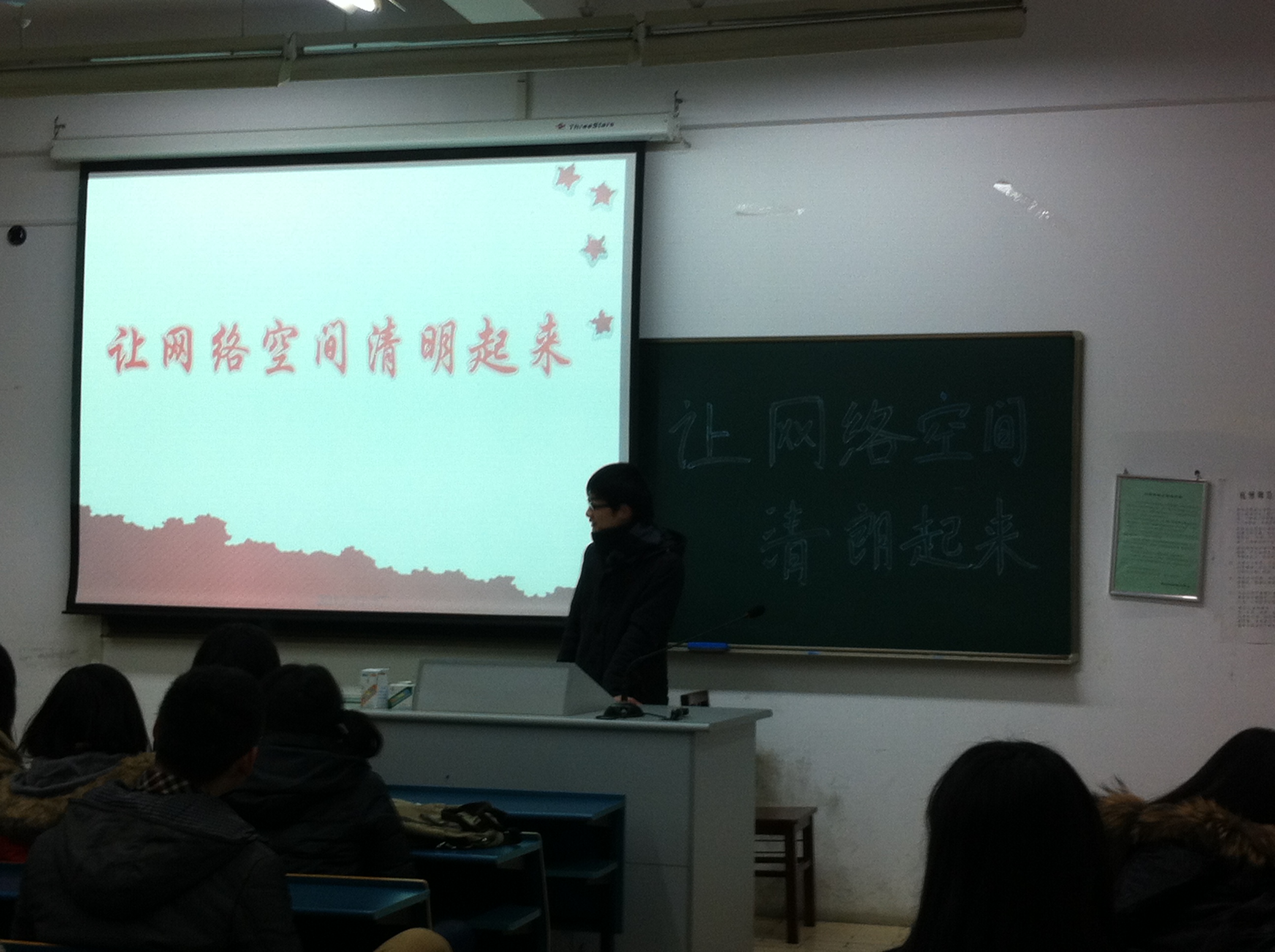 各班通过PPT讲演的形式引导和规范网络舆情,强化同学们“当战士、不当‘绅士’”的意识,并积极应对新媒体挑战。活动过程中,同学们了解了网络上的不文明现象和遇到这些不文明现象时能够采取的措施,以便及时应对,使大家免受不文明网络的影响。除此之外,也对省委周艳书记关于让网络空间晴朗的专题文章如《青少年要站在网络的文明高地》有了涉猎,对自身行为做了深刻的反省,树立起正确的网络观、舆论观。