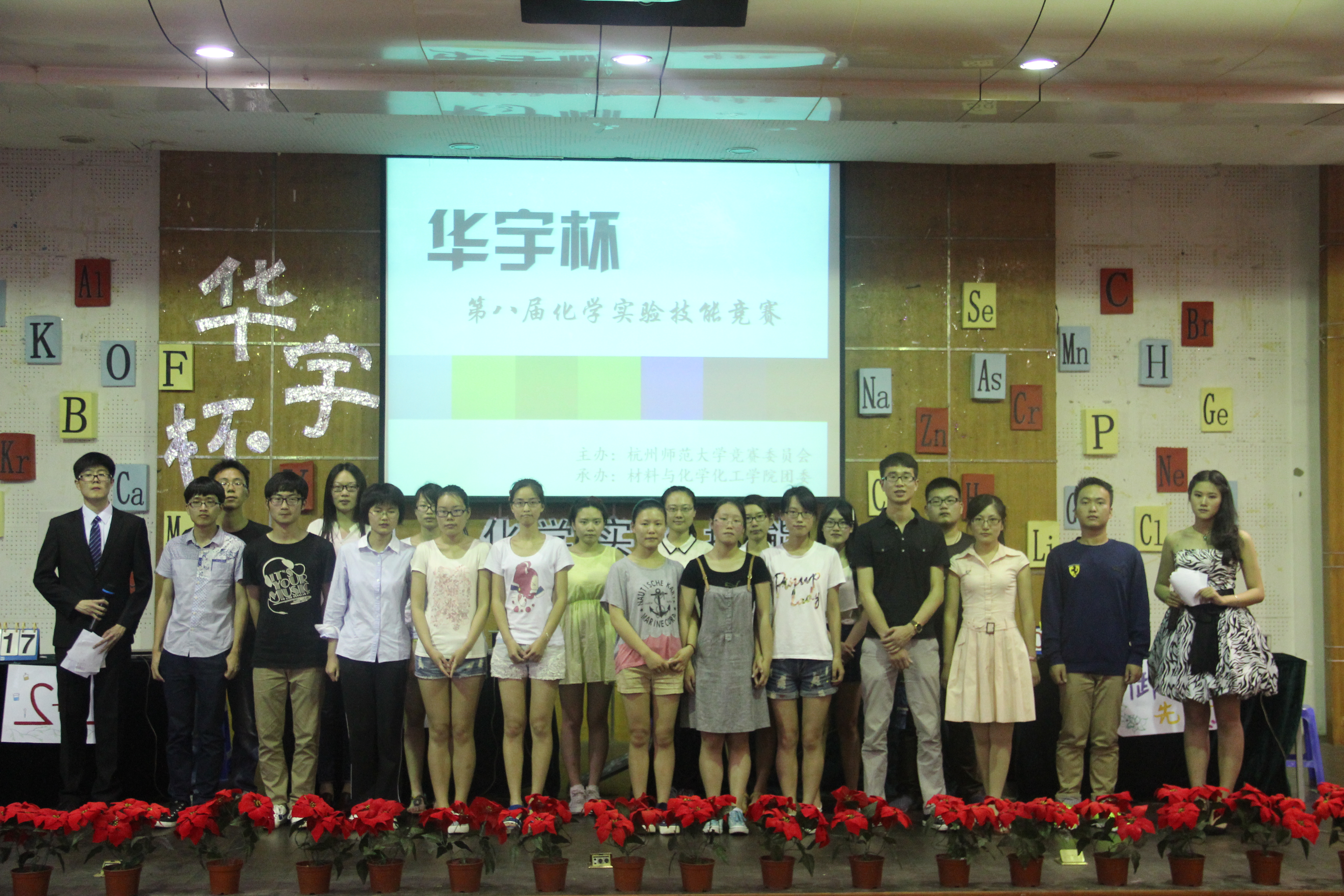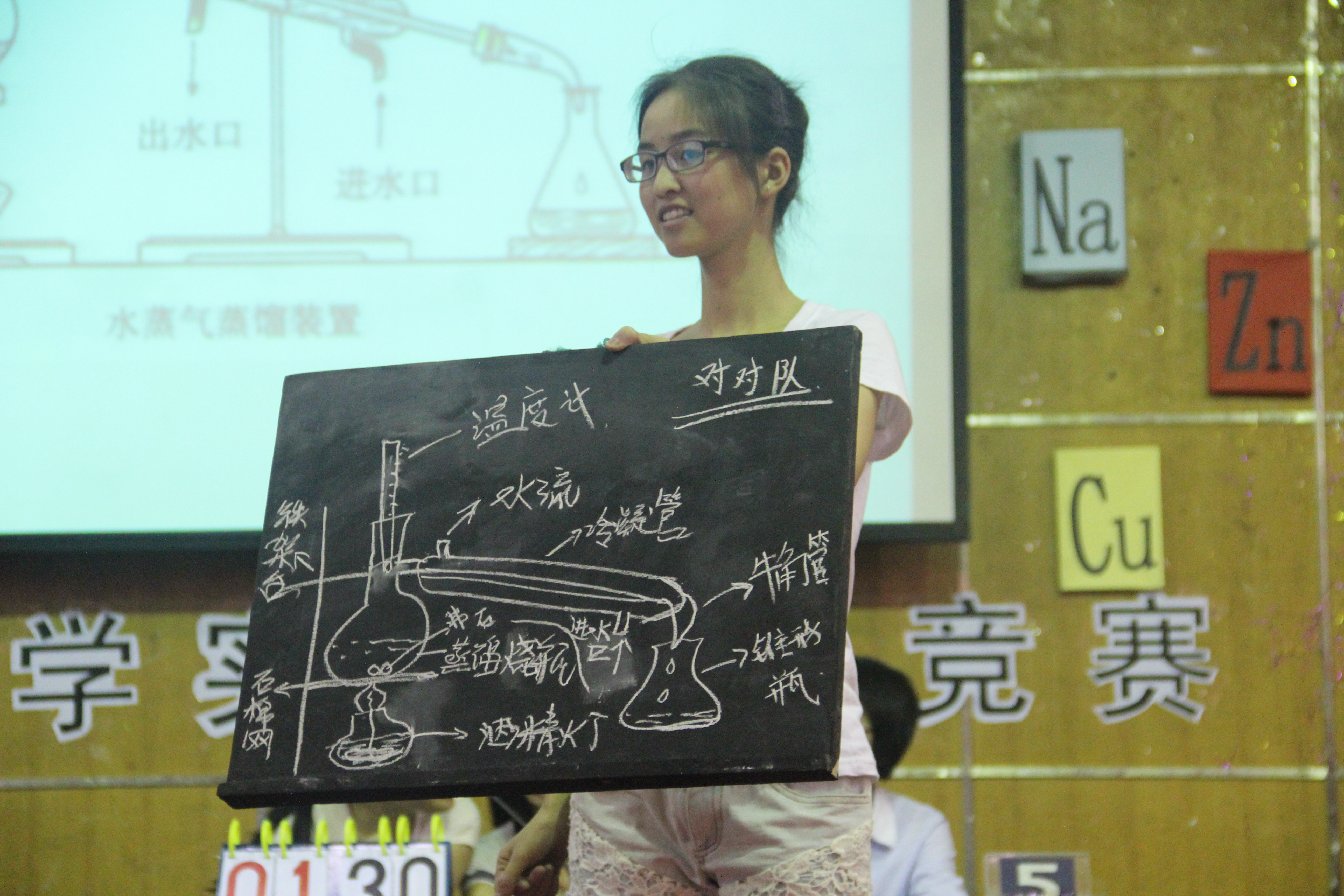本次比赛分为必答题、实验操作题、抢答题和风险题四部分。比赛尚未开始,六支队伍分别进行了具有各自特色的ppt自我介绍,让大家对六支队伍有了初步的了解。在必答题环节,选手们向我们展示了他们的化学知识;在选手们进行实验操作题环节时,观众互动更是将比赛推至高潮;而后的抢答题环节更是激动人心;在最后的风险题环节,观众更是折服于他们丰富的化学知识。