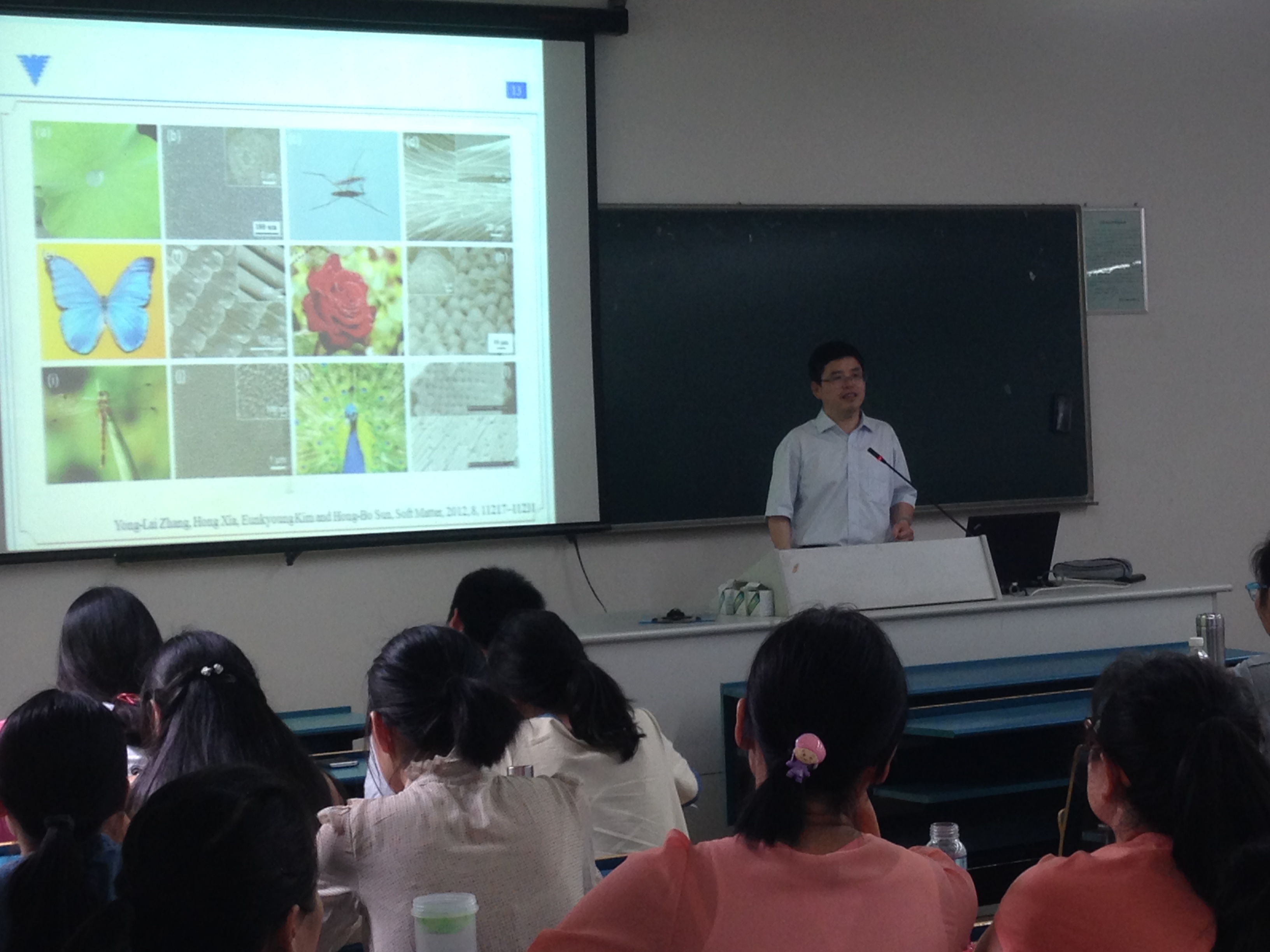 方教授从自然现象的观察和思考、海岸线有多长、小液滴、小气泡和小颗粒的形状与生长这三个问题切入,让同学们感受到大自然和化学之间的密切联系。方教授提醒大家,要善于从自然界中学习化学知识,要透过自然现象思考其中的化学启示。方教授循循善诱的的授课艺术和广阔的化学学科视野博得了师生们的阵阵掌声。