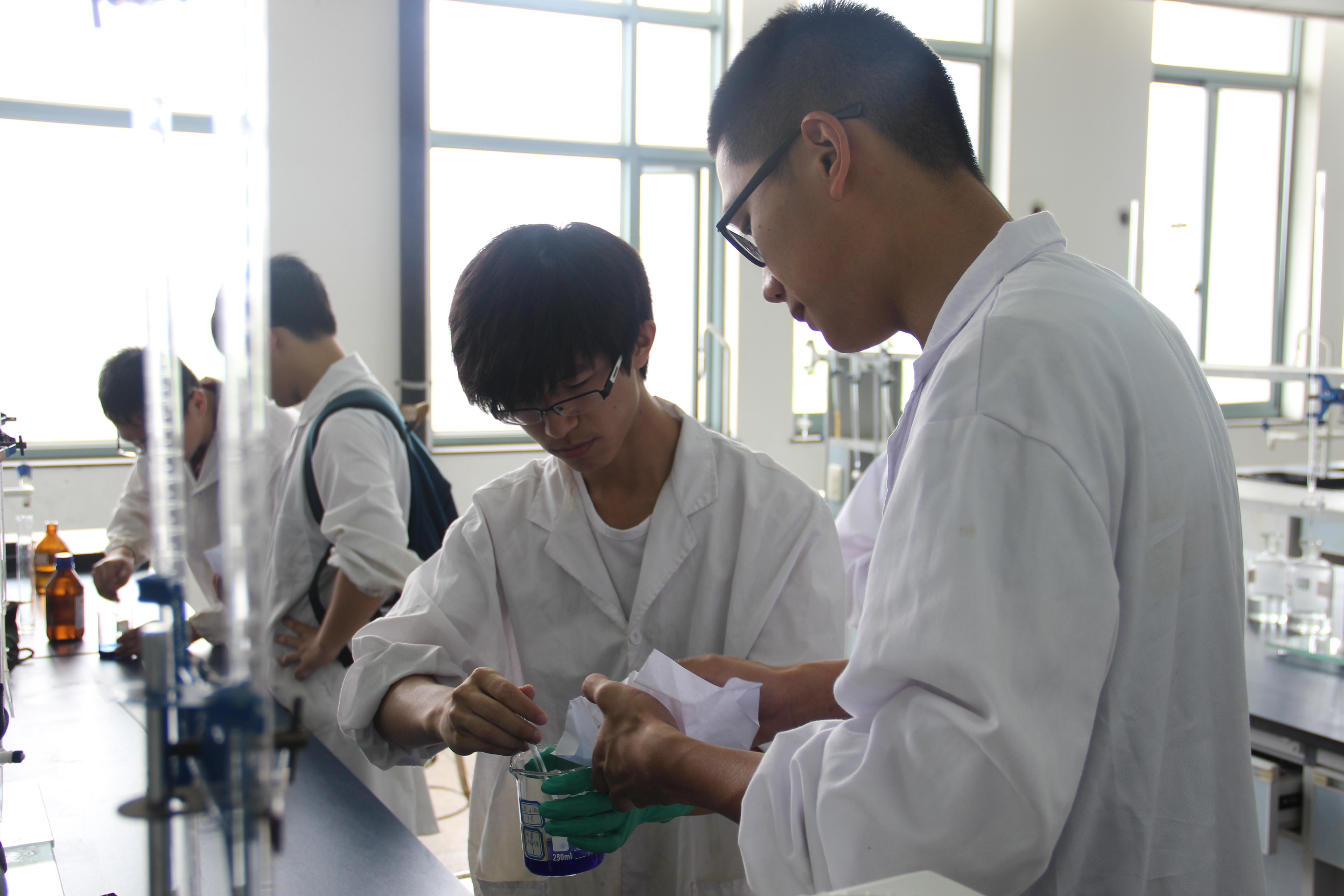 在本次试验操作赛开始之前,选手们都耐心地在教室外候场,对此次操作赛表现出了极大的自信心。正式进场后,选手们从老师手里接过试题,并且按号入座,开始了本次试验操作。在比赛过程中,虽然有评委们的来回观察,但各个小组都表现得不慌不忙,仔细谨慎地进行着各个步骤,组员之间也展现了良好的配合度。随着各个小组将最后得到的结晶上交给老师,此次操作赛圆满落幕。