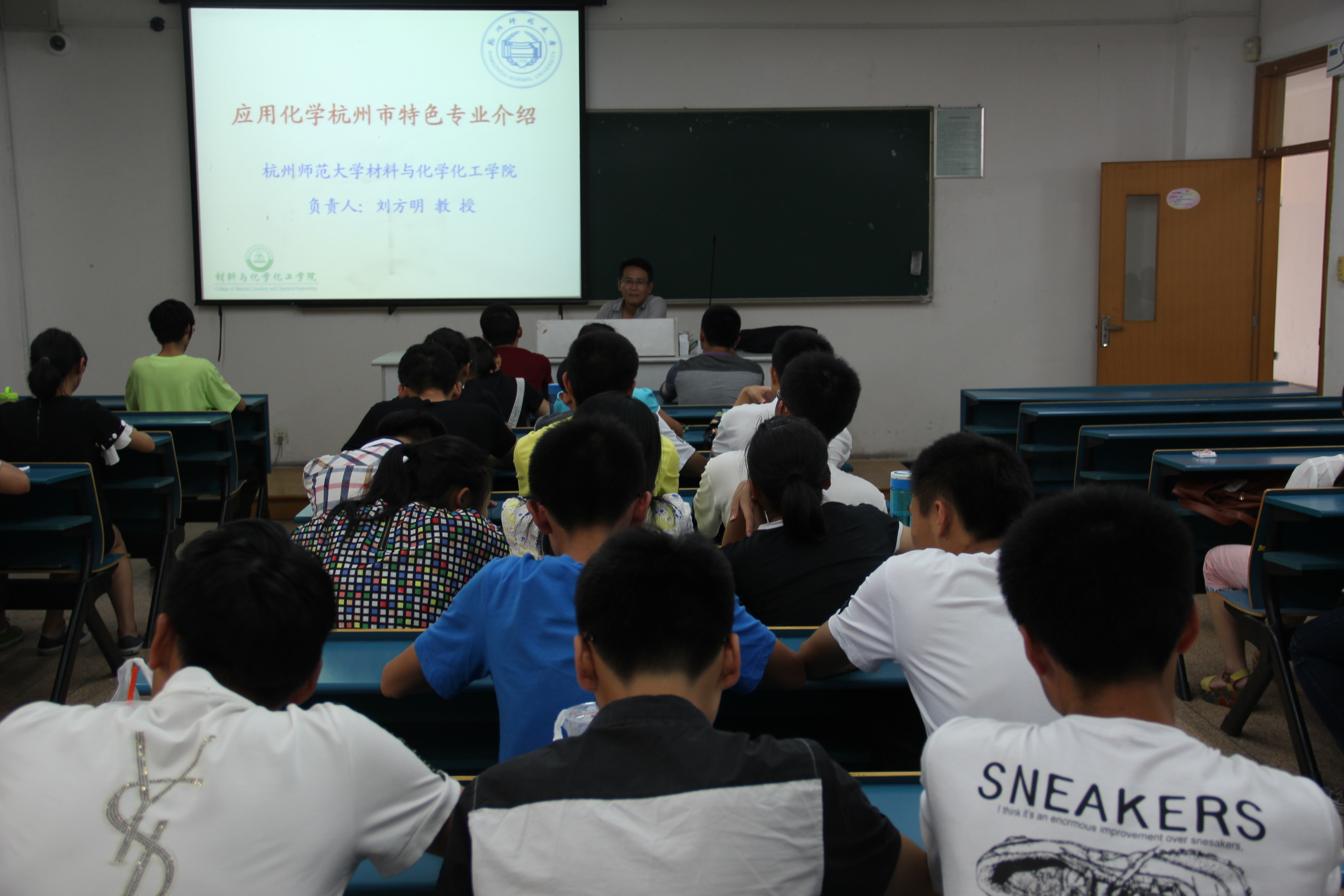 刘老师以“应用化学杭州市特色专业介绍”作为本次始业教育的主要内容,详细讲解了应化专业建设的基础、专业特色以及专业录取与就业情况。刘老师还对新生们的谆谆教诲如何尽快适应大学生活。并表示大学四年学习并不只为了分数,而是着重于创新意识与实践能力的培养。学习并不是大学生活的主要,作为一名大学生应广泛涉猎,开阔视野,积极参加学生活动。