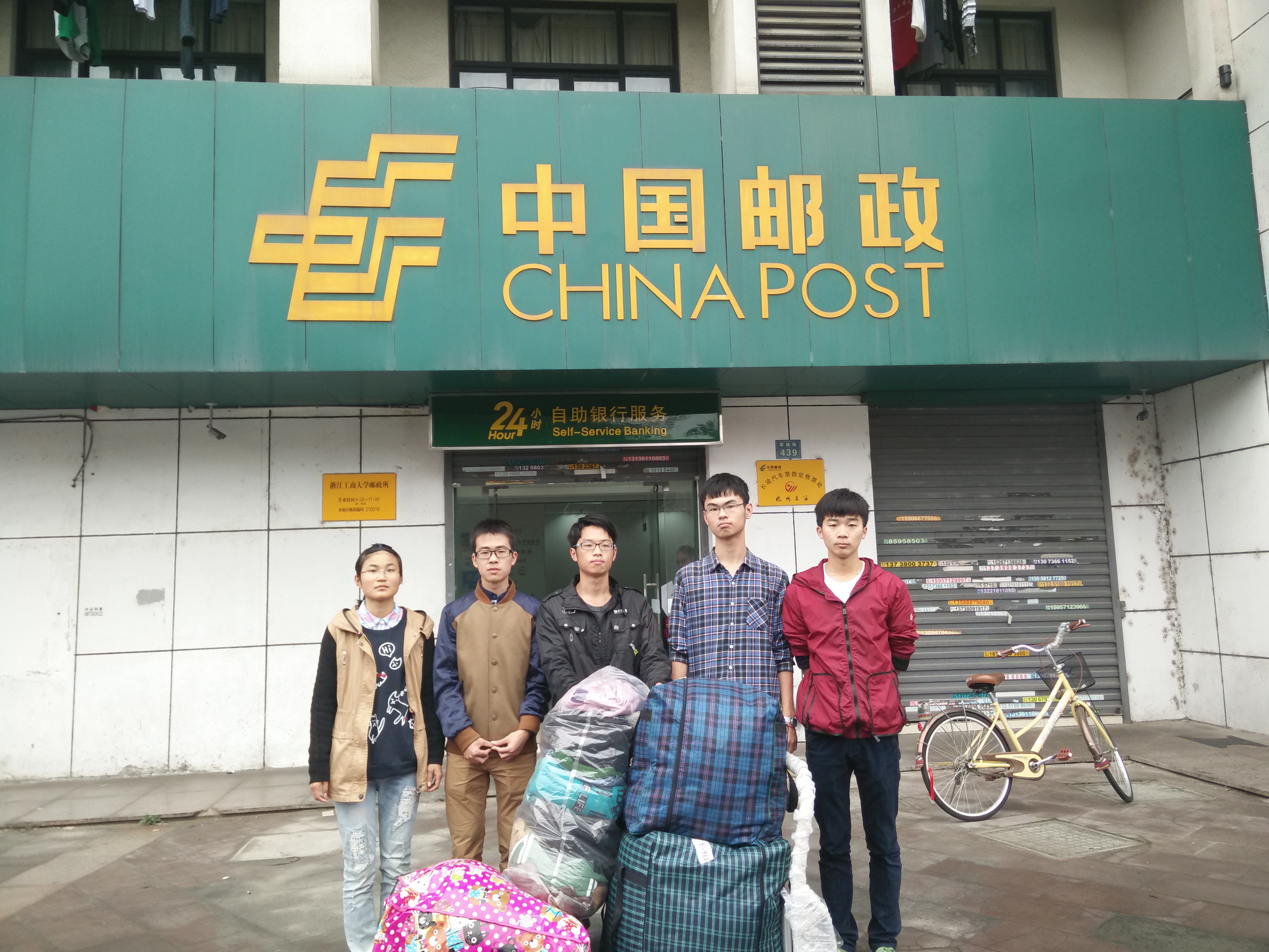 邮政局门口留念