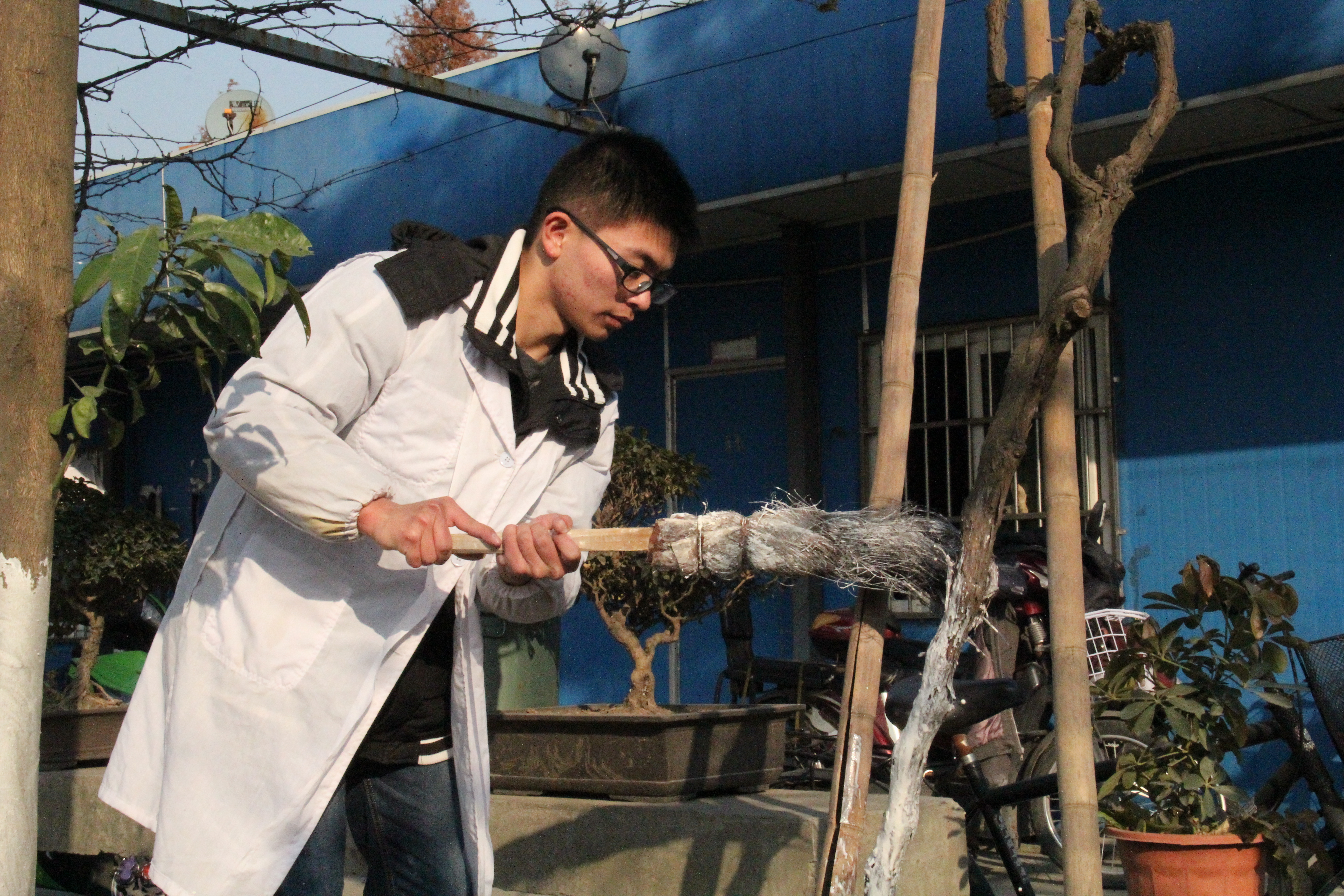 12月24日下午,义工们在材化勤工义工部部长毛嘉怡的带领下前往园艺中心参加树木刷漆活动。