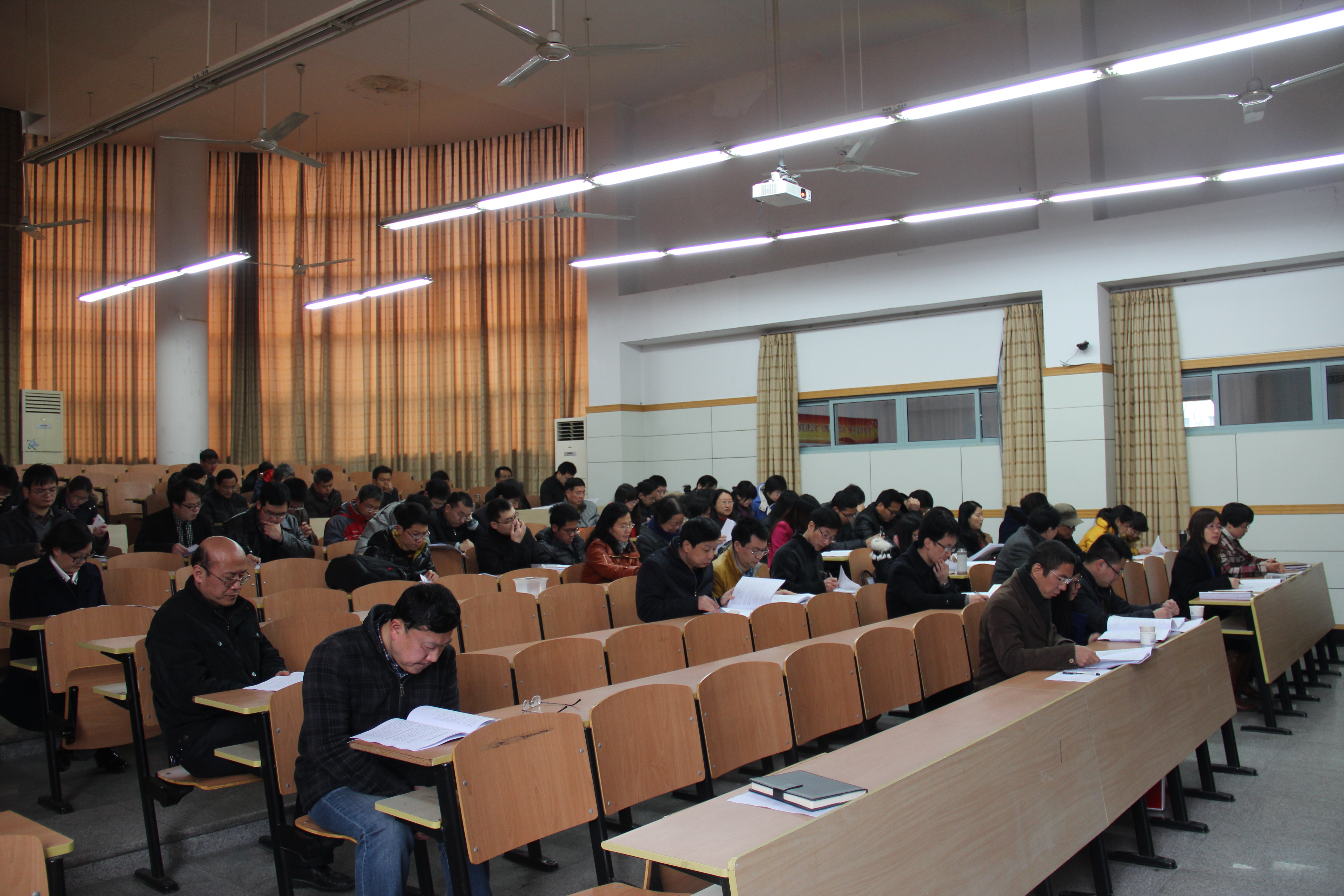 3月8日上午,jdb电子 新学期教职工大会在下沙D楼223教室举行。全体教职工参加了会议,会议由执行院长邱化玉主持。会议分为两个议程,一是进行jdb电子领导 班子及领导干部2014年度考核测评;二是布置新学期工作。