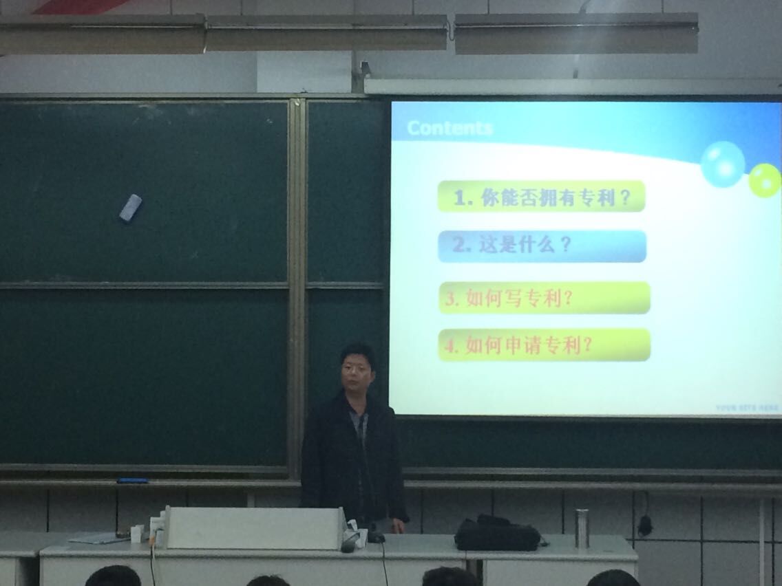 为普及专利知识,培育自主知识产权,推动科技成果转化,4月13日晚,我院邀请了理学院王一治教授为我院一百余名教师及学生举办了一场创新专利申请及撰写的专题讲座。