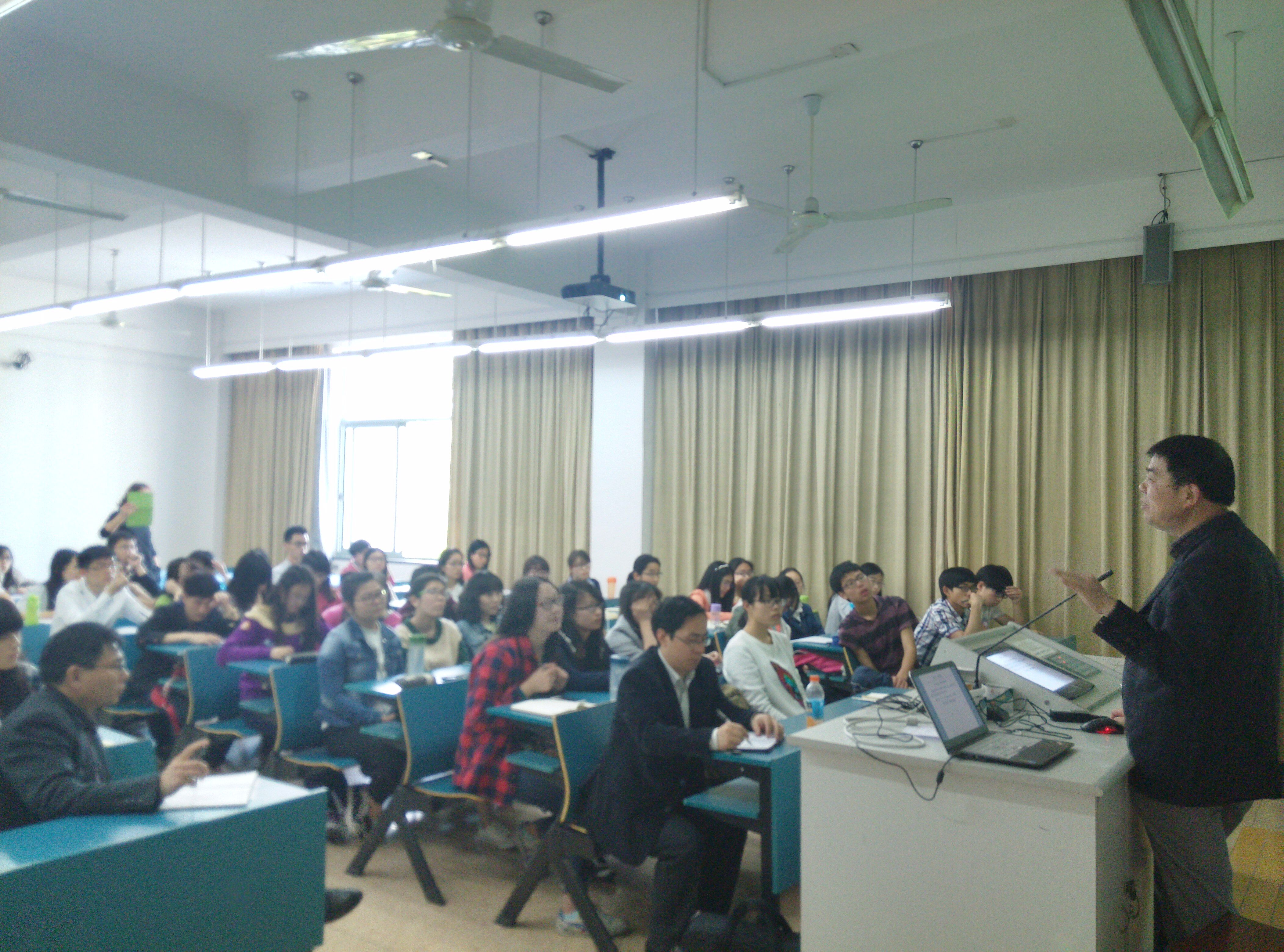 报告从下午1:30开始,4:30结束。陈老师就高考改革对化学教师的影响、化学师范专业毕业生应聘策略和优质教师成长等方面,做了全面、深入地发言。他语言幽默风趣、深入浅出,报告内容丰富、务实。报告由韦斯林副教授主持,王园朝副院长出席,jdb电子 化学师范专业12级全体学生及13、14级部分学生到场聆听。