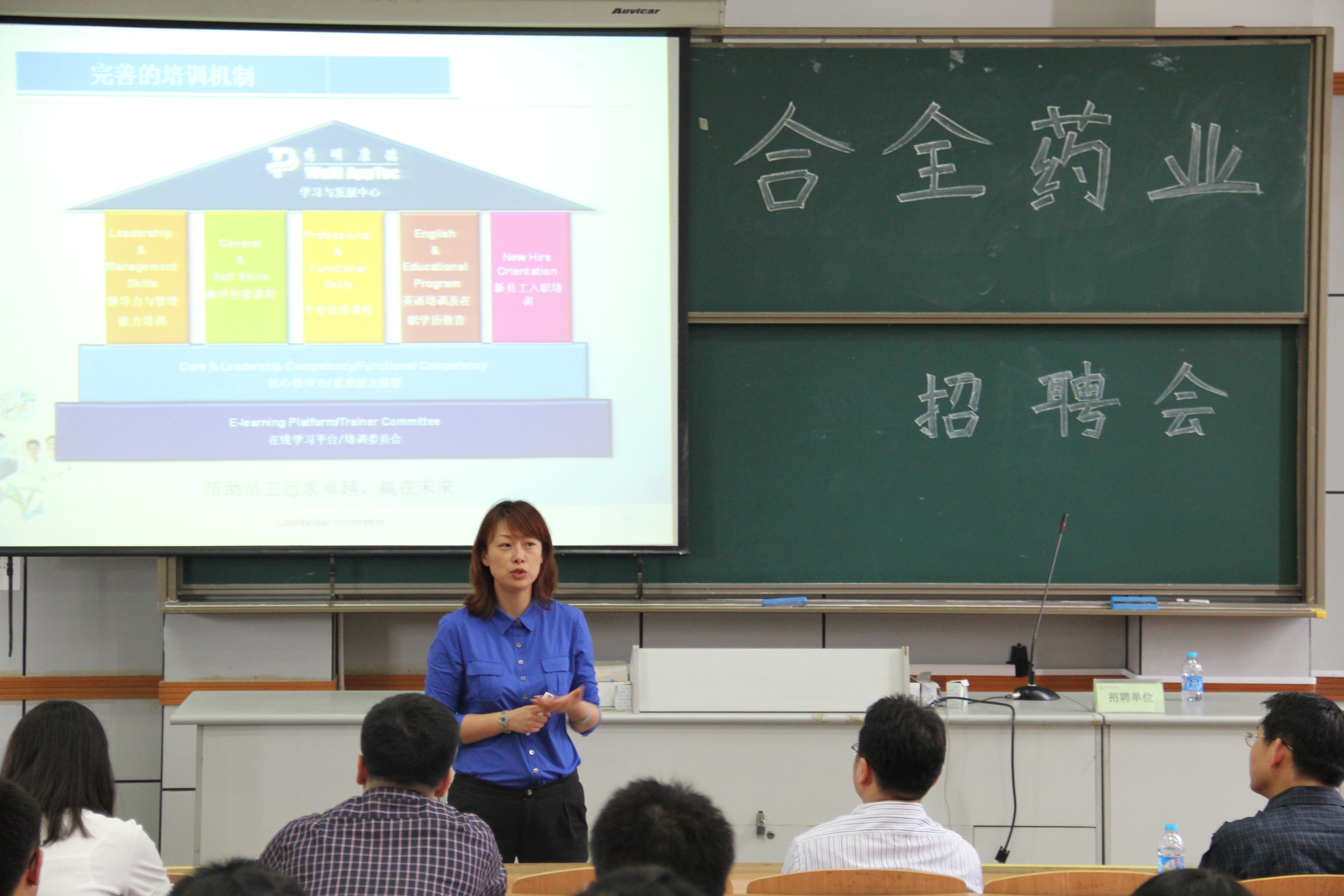 6月10日下午,jdb电子 职业发展中心在B楼202教室举办了合全药业公司的招聘会。该公司副总裁王博士,项目部张主任以及人力资源部王主任亲临此次招聘会,为大三同学讲解了公司的概况及其内容。