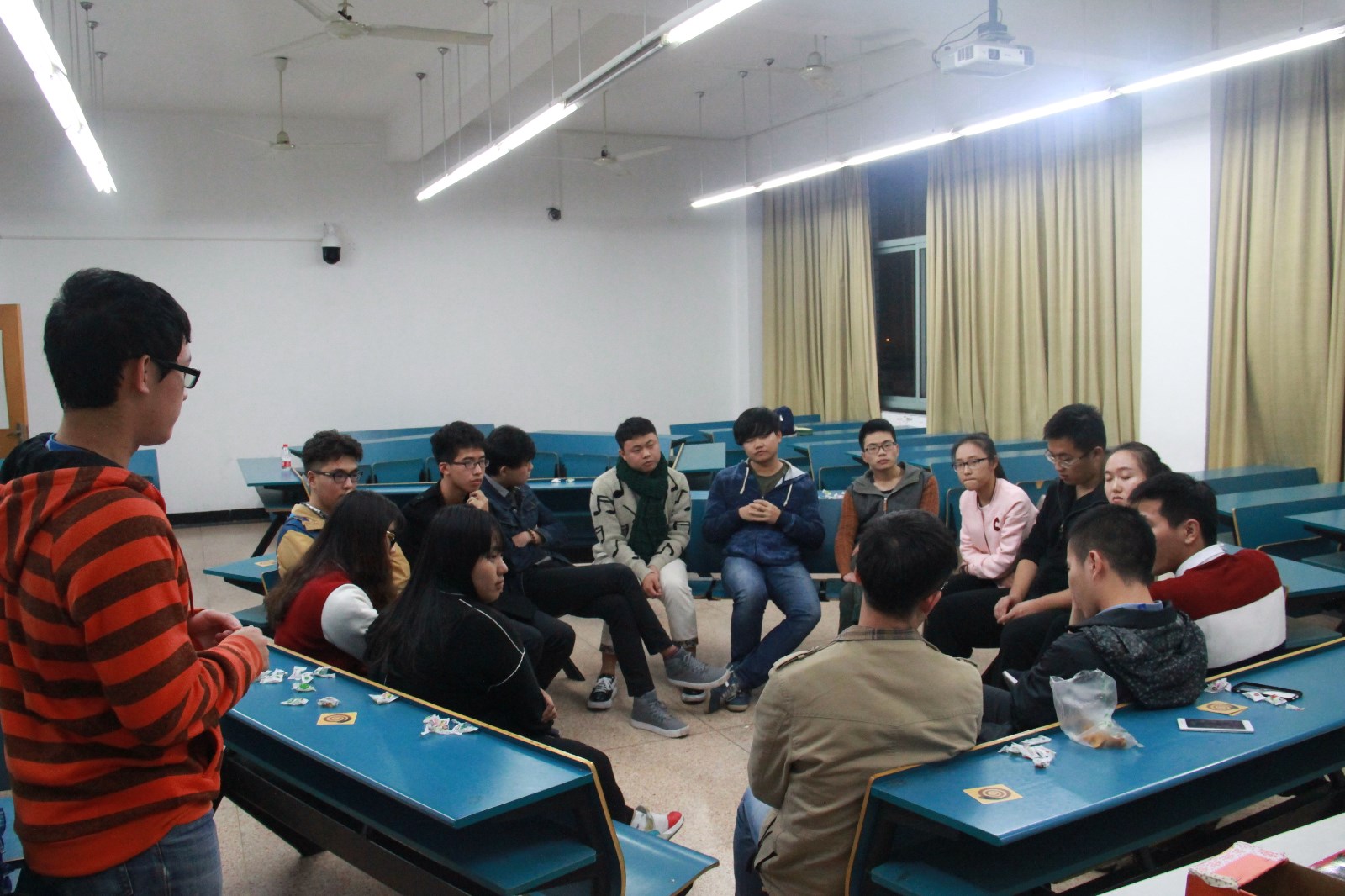 11月21日18:00,jdb电子 “U-know”桌游社于A-414、415、416教室顺利举办“狼人杀之夜”活动,社联社长叶潇赟,副社长沃华栋到场主持活动。