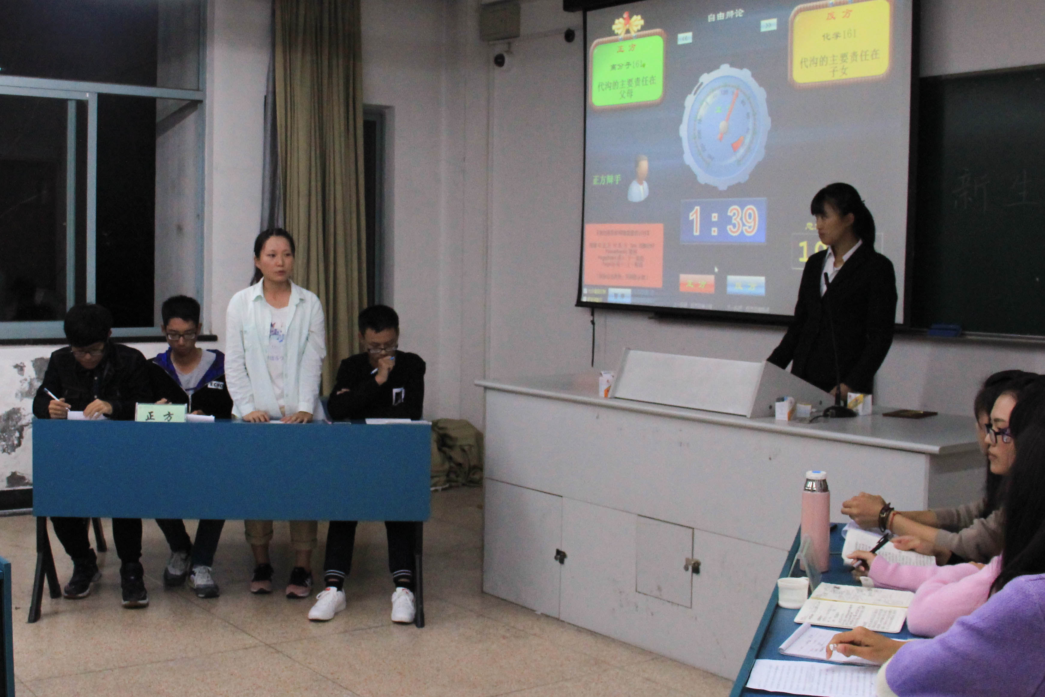 10月11日19:00,jdb电子 16级同学于A-313举行了新生杯辩论赛初赛。每班派出四位辩手进行辩论。来自学院辩论队的学长学姐作为本次比赛的嘉宾出席。