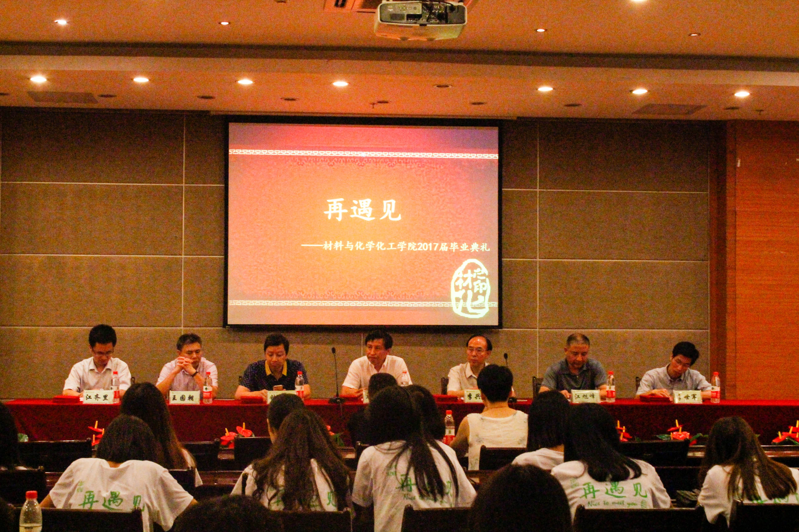 2017年6月19日下午,jdb电子 2017届毕业生毕业典礼在行政楼叙伦厅隆重举行。执行院长邱化玉,党委书记李兴听,副院长王园朝、李世军,党委副书记江齐里出席典礼,jdb电子 87届校友、湖州市教科研中心主任江旭峰作为校友代表应邀参加,学院办公室主任黄小兰、教务科科长丁琰、实验中心主任尹守春、应化131班主任王民、高分子131班主任王莲及团委副书记张楚黛老师也莅临本次典礼。