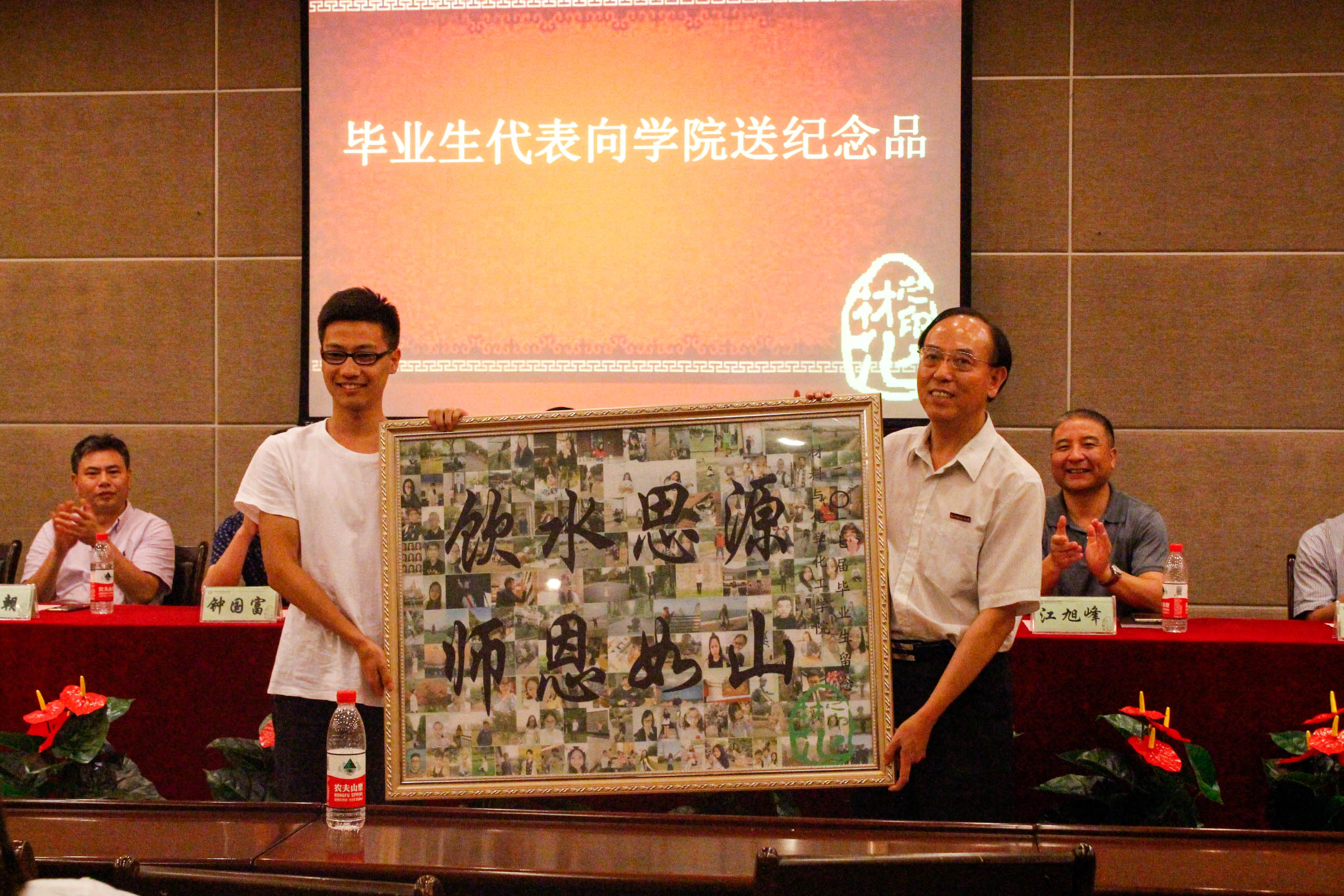 最后,李书记代表学院,接收了2017届毕业生为学院精心准备的纪念品。