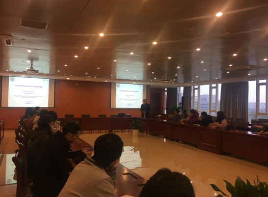 纪顺俊教授作了题为“异腈的多组分反应”的学术报告。jdb电子 相关研究领域的师生认真聆听了本次报告。纪顺俊老师从异腈化学的研究出发,介绍了利用多组分反应或串联反应合成具有生物活性的含S、Se、N、P等杂环化合物的研究,并且分享了基于异腈研究的最新研究成果。报告引起了在场师生的广泛兴趣,与会人员积极提问并进行了深入的交流与讨论。本次报告开阔了与会师生的学术视野。