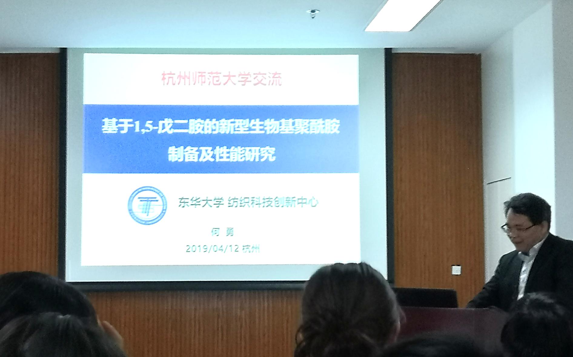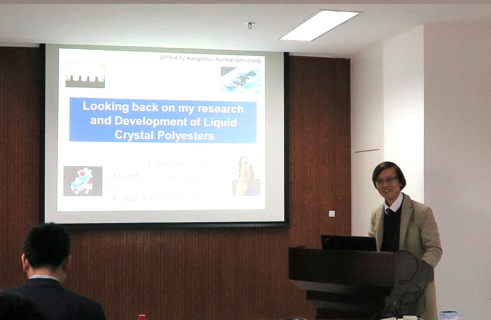 2019年4月12日上午10:00,井上俊英博士和东华大学何勇教授应jdb电子 李勇进教授的热情邀请,分别为材化师生做了题为“looking back on my research and development of liquid crystal polyesters ”和 “基于1,5-戊二胺的新型生物基聚酰胺及其性能研究”的学术报告。