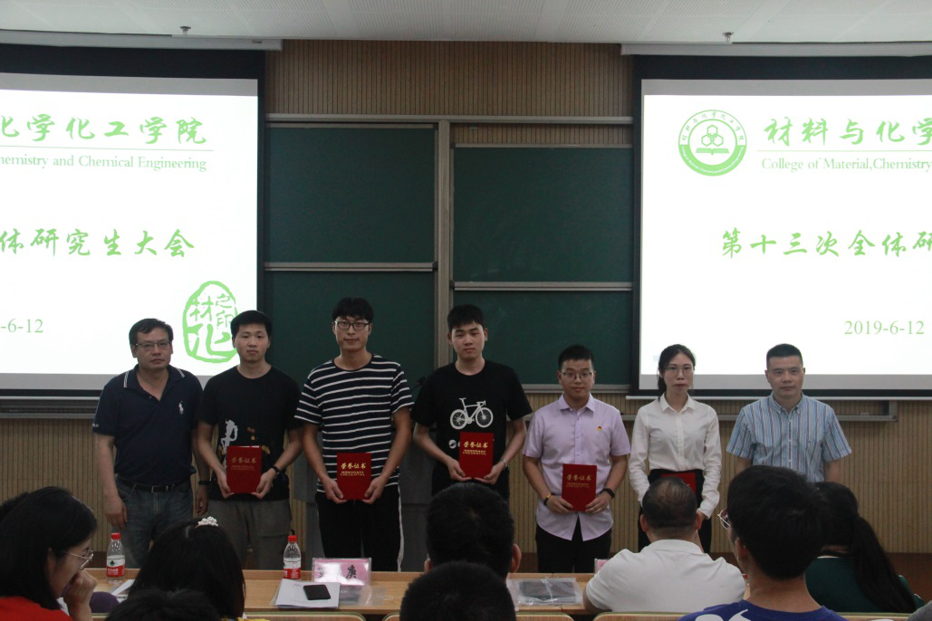 会议伊始,章鹏飞院长上台为本次大会致辞。他充分肯定了本届研究生干部所做的各项工作,并对新一届的研究生干部提出了新的要求,希望同学们在专注科研的同时也能各展所长、综合发展。在随后的颁奖环节,jdb电子 也向2018-2019年度学院研究生工作先进个人提出表彰。