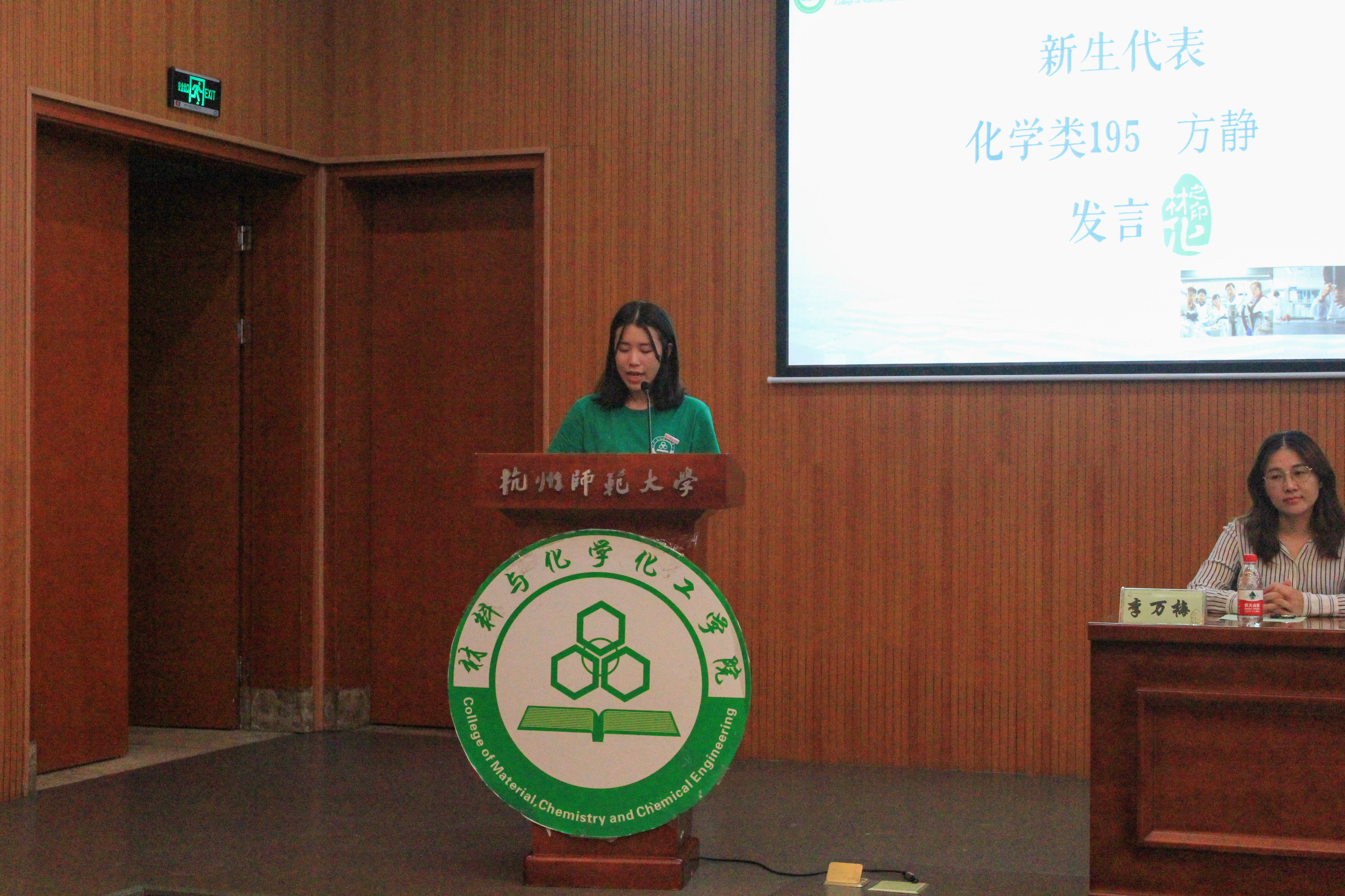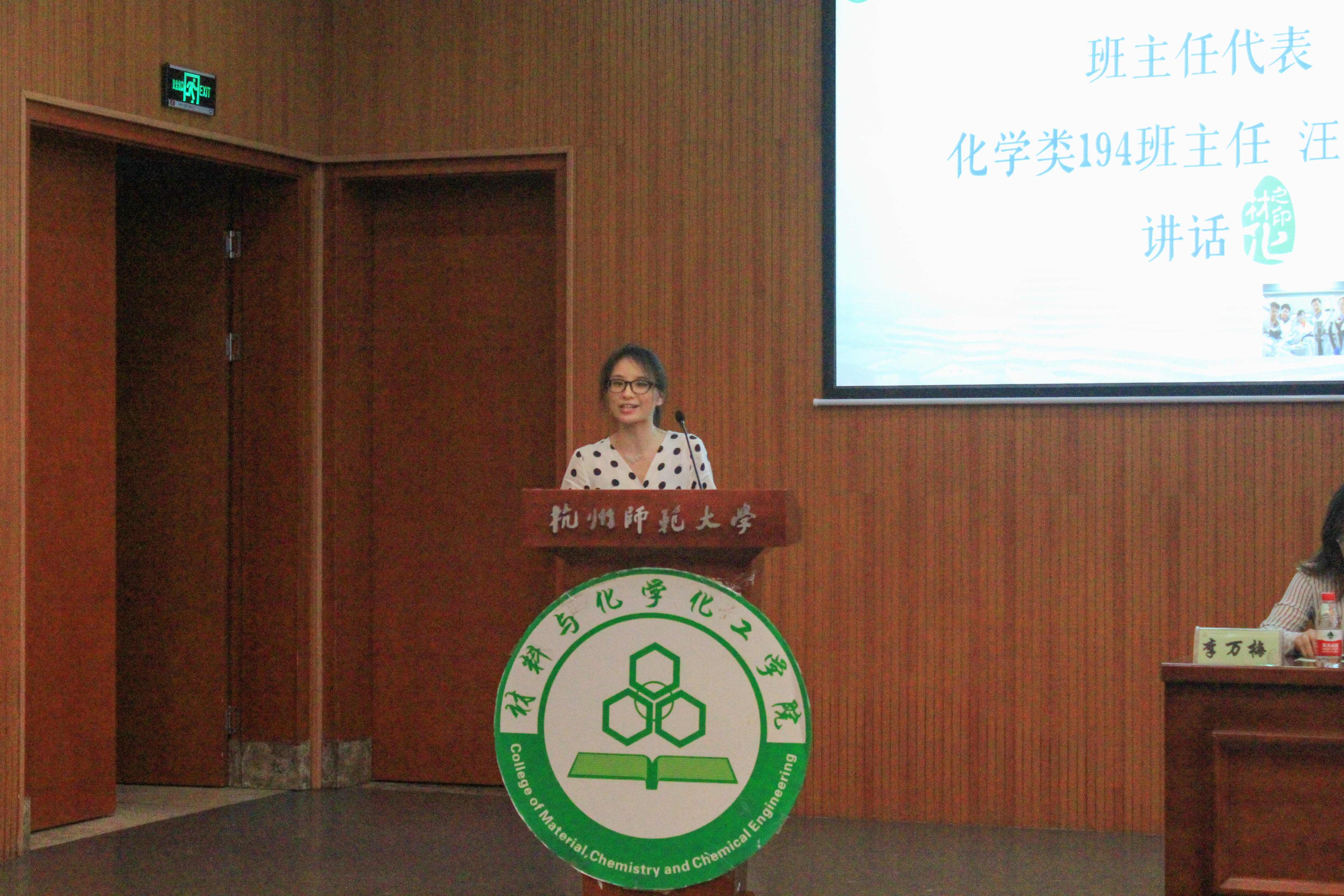 随后,班主任代表、化学类194班汪红娣老师通过类比的方式向同学们推荐了四位“朋友”:传道授业的老师、并肩而行的同学、追梦路上的自己和沉默寡言却内有乾坤的书籍。她期盼新生们能在“朋友”的帮助下成为一个更有高度、更有力度、更有温度的人。