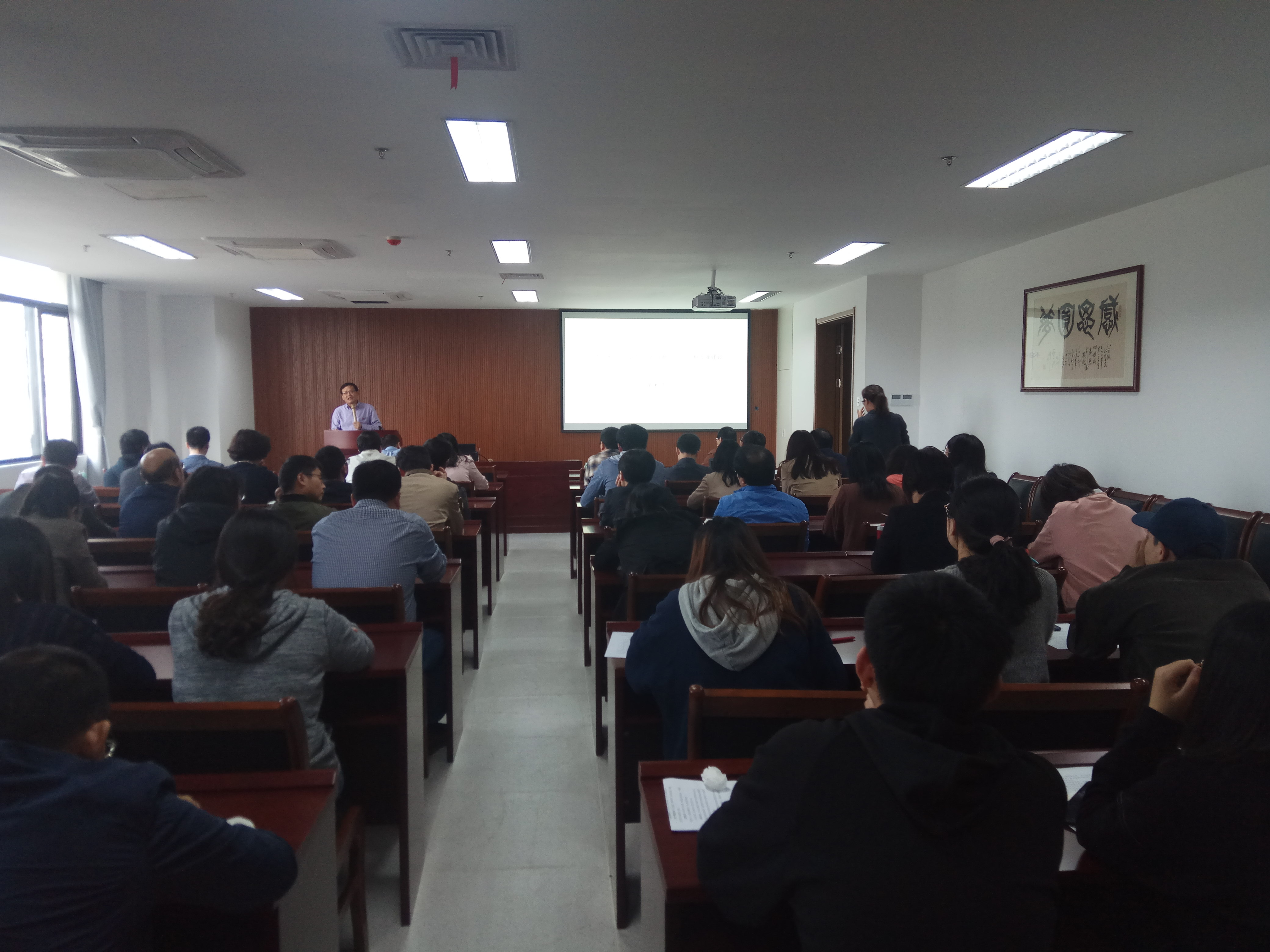 10月16日下午,jdb电子 “不忘初心、牢记使命”主题教育专题党课在勤园17号楼210会议室举行。院党委书记罗来庚、院长章鹏飞分别上了专题党课,全院教职工、学生党员参加了党课学习。