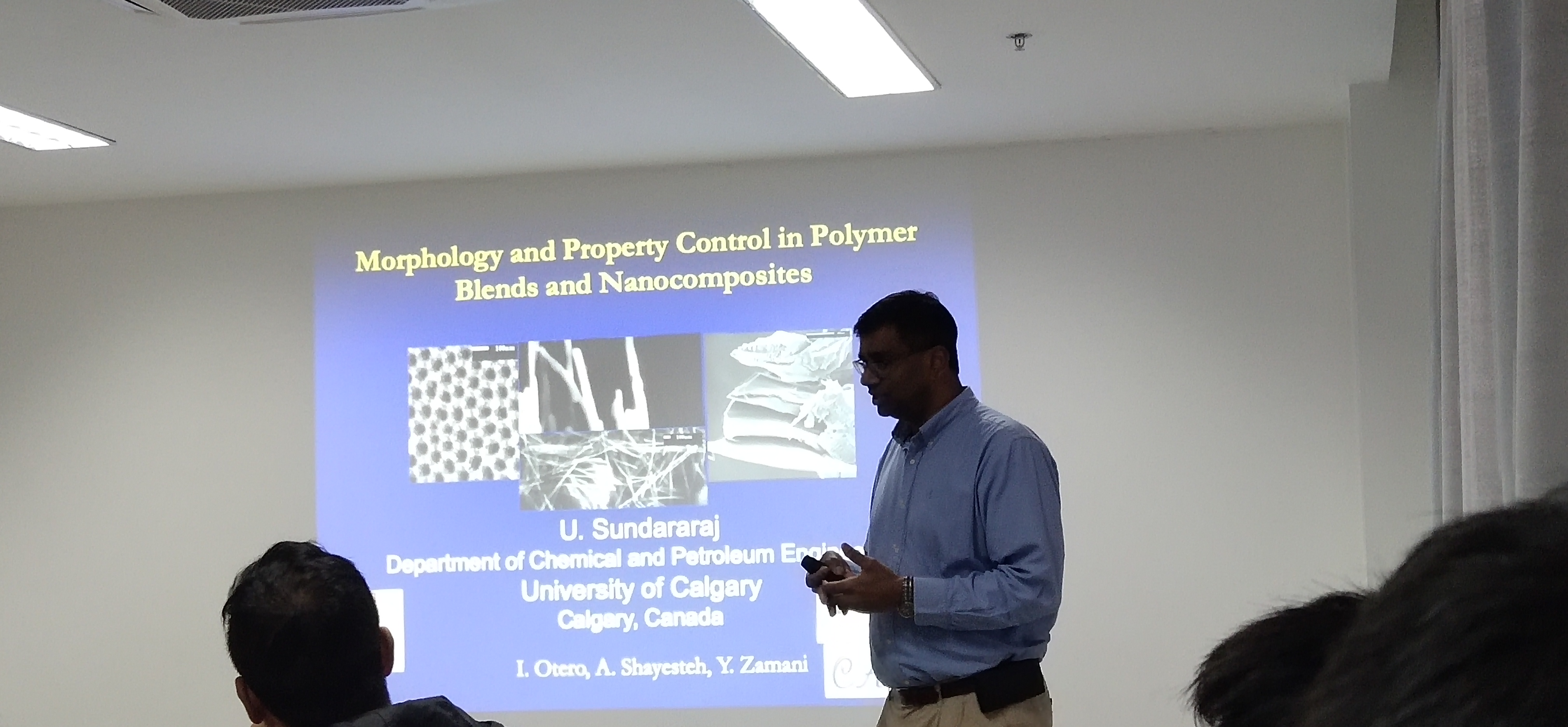2019年11月20日14:00与2019年11月21日下午14:00,加拿大卡尔加里大学的Uttandaraman Sundararaj教授应jdb电子 李勇进教授的热情邀请,分别做了题为“Morphology and Property Control in Polymer Blends and Nanocomposites” 与“用于发电、电荷存储、静电放电和电磁干扰屏蔽的混杂聚合物共混纳米复合材料”的学术报告。