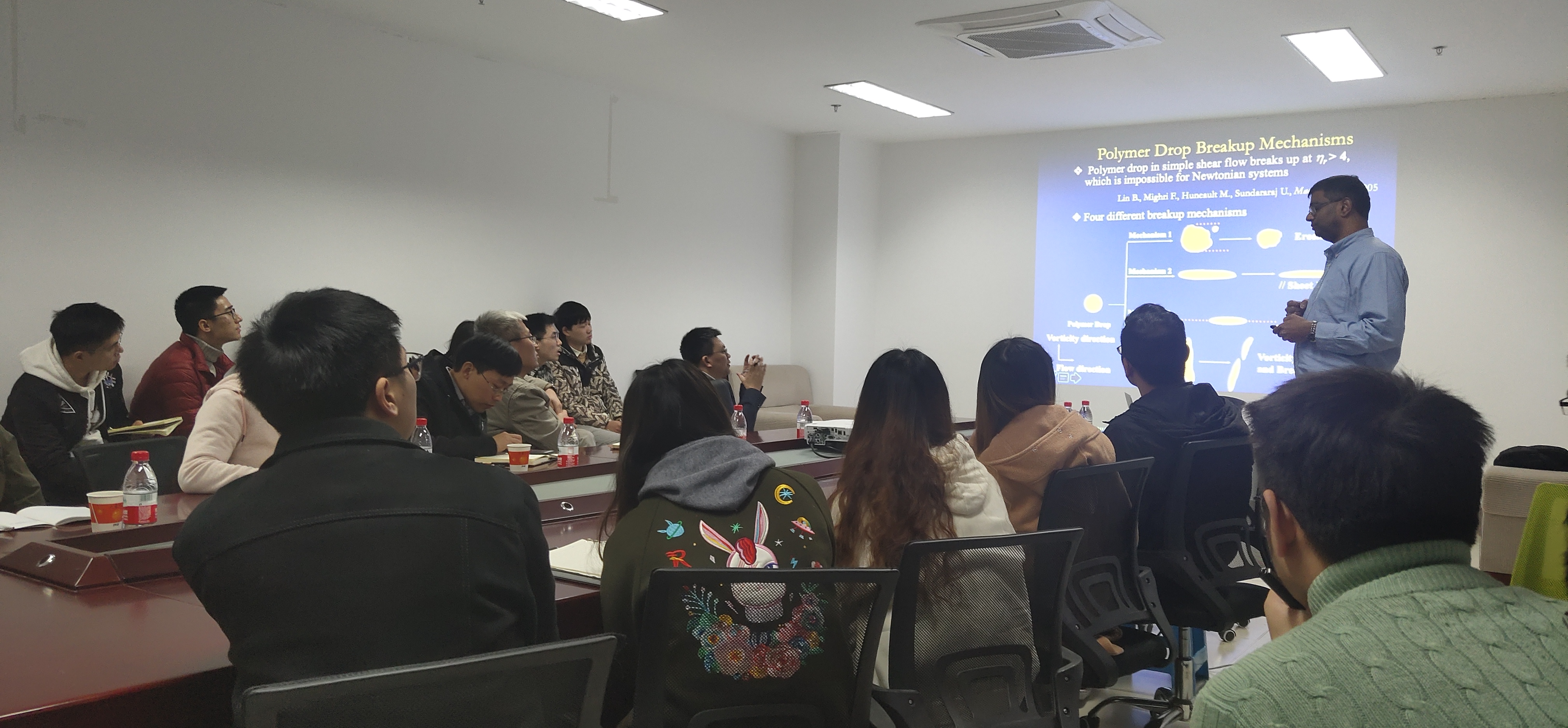 在20日的报告中,Uttandaraman Sundararaj教授向我们讲解了聚合物共混物和纳米复合材料的形貌和性能控制。Uttandaraman Sundararaj阐述了粘弹性体系中的液滴变形和破裂的复杂过程,而微型混合器(APAM和MBM)是聚合物纳米复合材料的高效混合器。同时阐述了NW和CNT含量低的导电纳米复合材料,隔离的网络有助于降低渗透浓度。Uttandaraman Sundararaj教授深入浅出的报告令在座的师生获益匪浅,其严谨深刻的讲述方式更是获得了一致的好评。在座师生认真听讲,积极思考,在报告结束后也教授一起交流自己的困惑。Uttandaraman Sundararaj教授也就相应的问题做了解答,让师生对共混体系的形貌和性能有了更加深刻的认识。