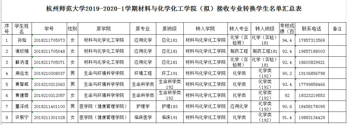 根据《jdb电子 本科学生专业转换管理办法》(杭师大教〔2018〕11号)文件,及《关于做好2019-2020-1学期专业转换工作的通知》,经过资格审核、笔试及面试,拟接收下列同学转专业到jdb电子 ,名单公示见附件。