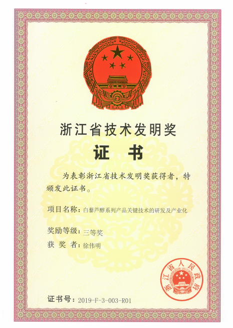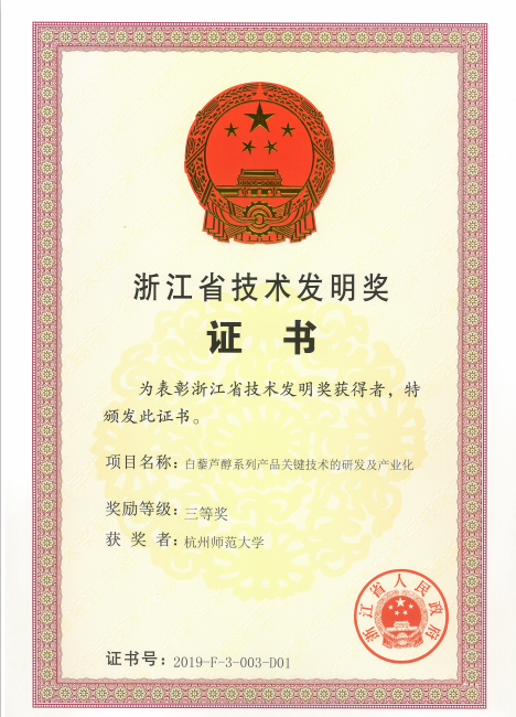 7月17日,浙江省科学技术奖励大会在省人民大会堂举行。297项科技创新成果荣获2019年度浙江省科学技术奖。jdb电子 为第一完成单位,jdb电子 徐伟明为第一完成人的成果“白藜芦醇系列产品关键技术的研发及产业化”荣获浙江省技术发明奖三等奖。