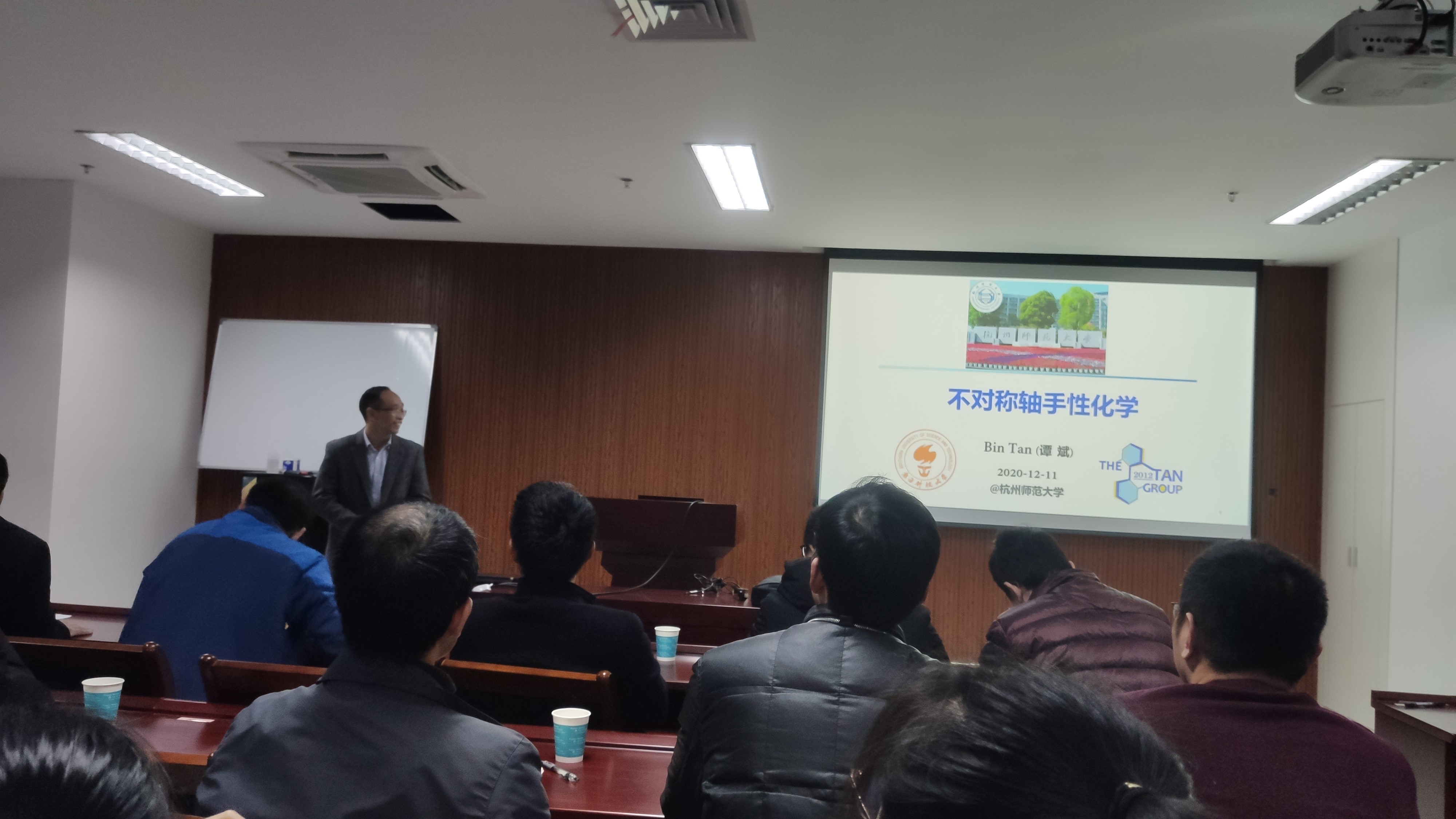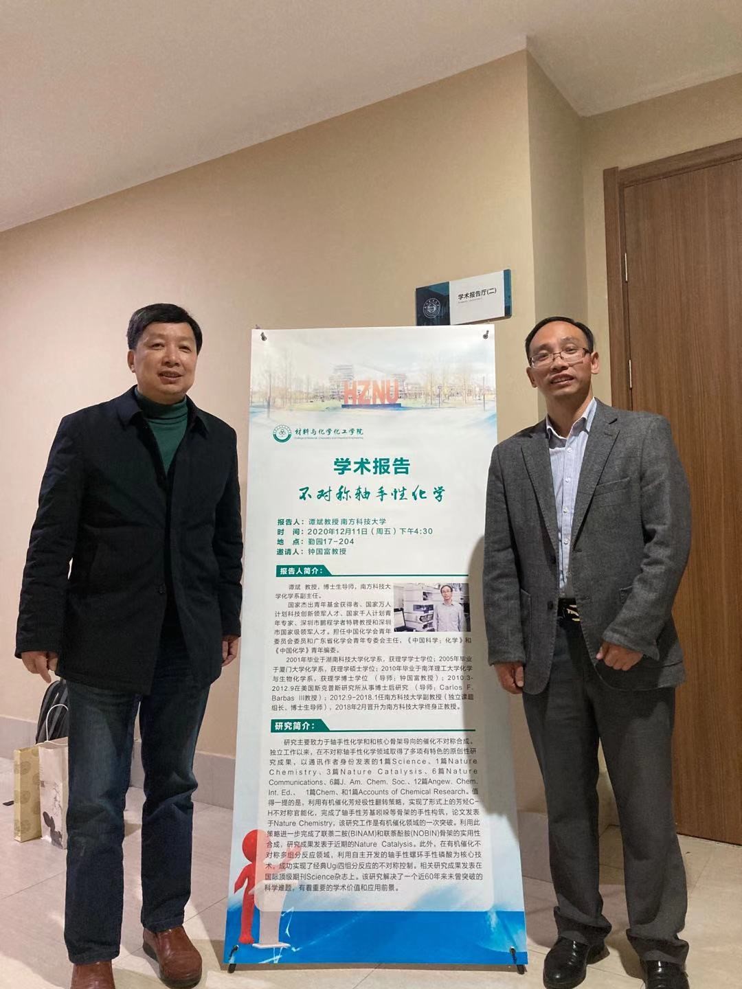 2020年12月11日下午,国家杰出青年基金获得者、南方科技大学化学系副主任谭斌教授应钟国富教授邀请来我校讲学,并在勤园17号楼210室为jdb电子 师生作了题为“不对称轴手性化学”的精彩报告。jdb电子 院长章鹏飞教授、有机硅化学及材料技术教育部重点实验室执行主任兼jdb电子 副院长徐利文教授,副院长曾晓飞教授,有机硅化学及材料技术教育部重点实验室副主任李志芳教授等参加了报告,报告由钟国富教授主持。