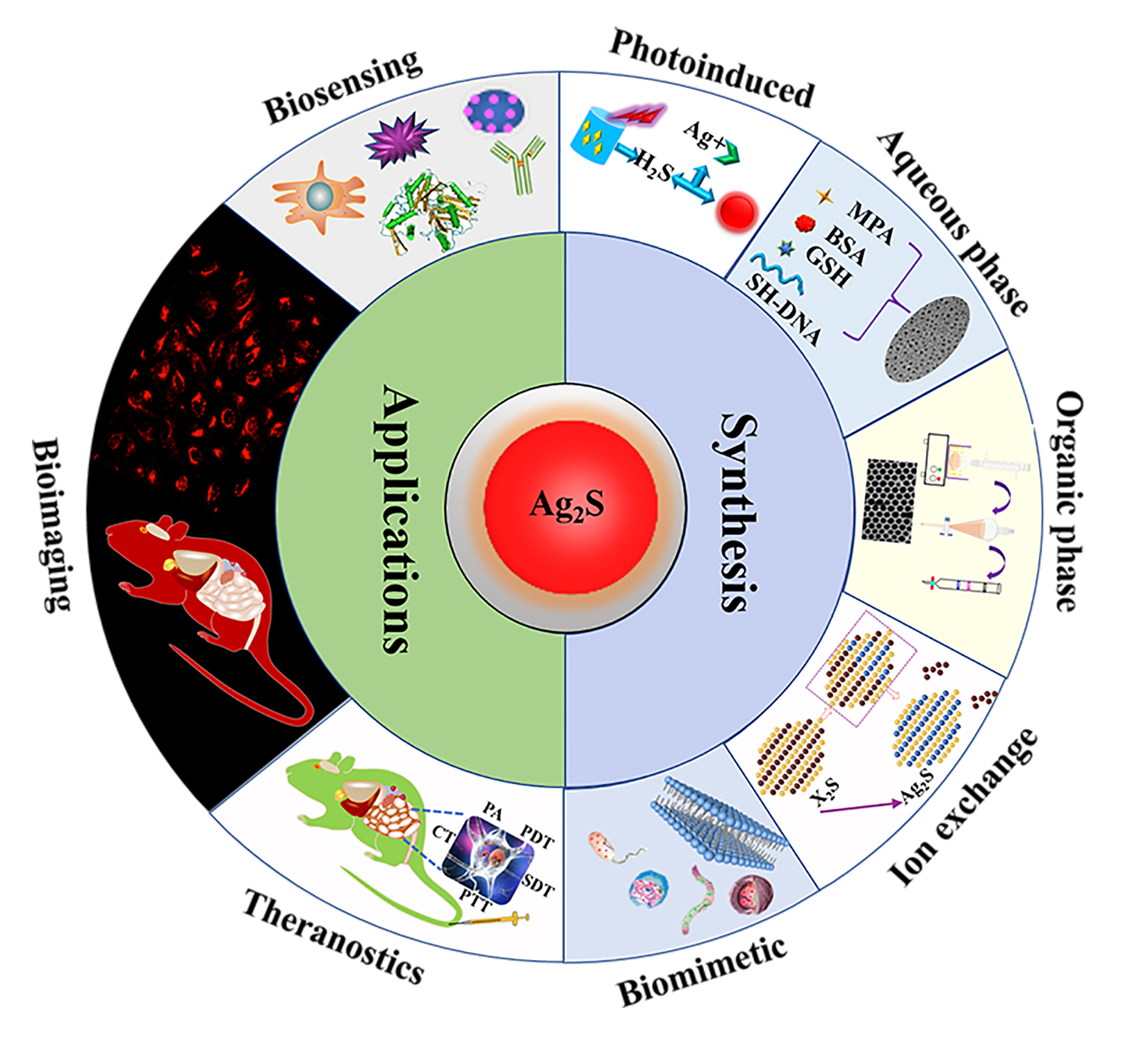 近日,jdb电子 黄又举教授团队与南方医科大学沈折玉教授和新加坡国立大学陈小元教授展开合作,系统总结了近十年来近红外(NIR) Ag2S量子点的合成及其在生物应用方面的研究进展。该论文从NIR Ag2S量子点的合成到其在生物传感、成像以及治疗中的应用进行了全方面的归纳总结,并对该领域的发展前景进行了展望。相关研究成果以题为“Synthesis and bioapplications of Ag2S quantum dots with near-infrared fluorescence”在顶级学术期刊Advanced Materials (IF=27.398)上发表。