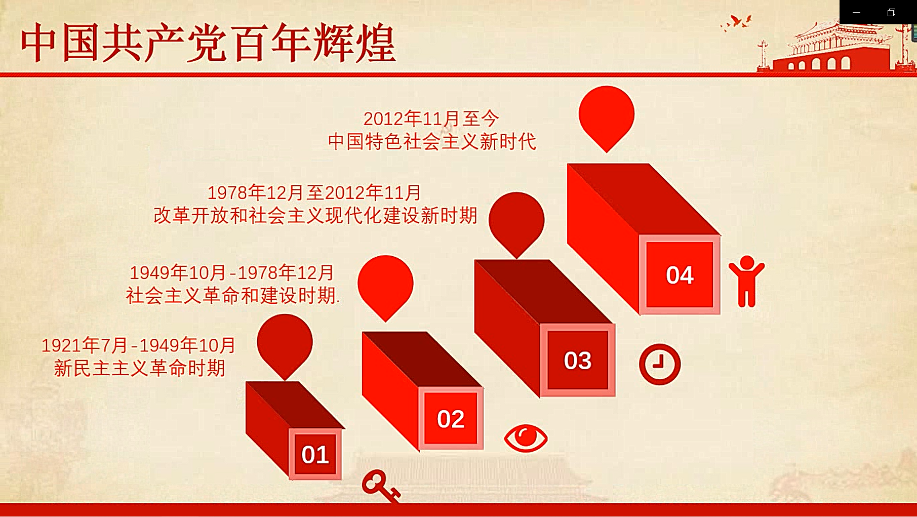 本课程以jdb电子 学生赴俞秀松烈士陵园、纪念馆,开展了清明祭扫和党史学习教育为开头,以俞秀松先生为导引,引出共产党诞生一百周年的主题。其次讲述了共产党百年光辉的四个历程:从1921年7月中国共产党建立至1949年10月中华人民共和国成立,是新民主主义革命时期;从1949年10月至1978年12月党的十一届三中全会召开,是社会主义革命和建设时期;从1978年12月至2012年11月党的十八大召开,是改革开放和社会主义现代化建设新时期;从2012年11月至今是中国特色社会主义新时代。在这四个历史时期,中国共产党完成和推进了四件大事。四件大事铸就了中国共产党百年辉煌,最后以杭州交通发展将进入高质量发展的“攻坚期”结尾,讲述了杭州作出的努力。
