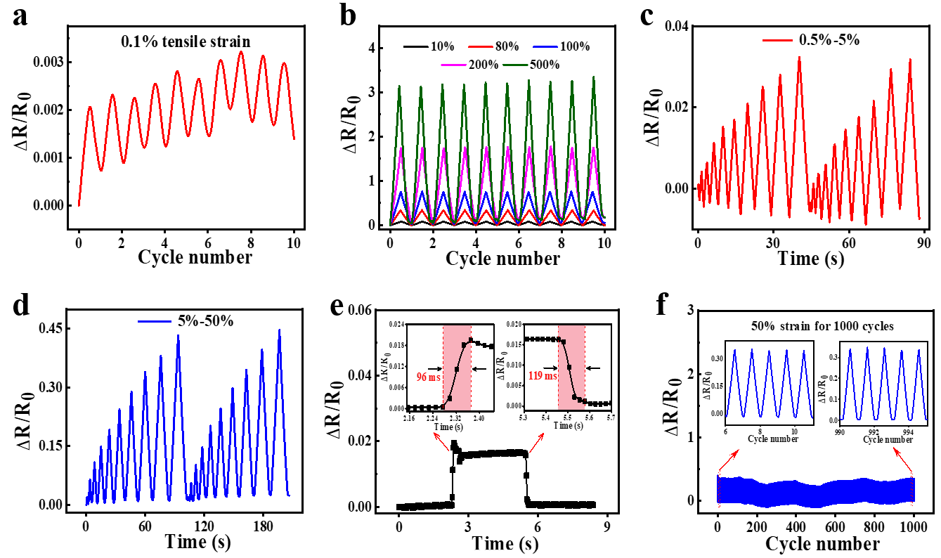 图2. 离子凝胶的应变传感性能分析