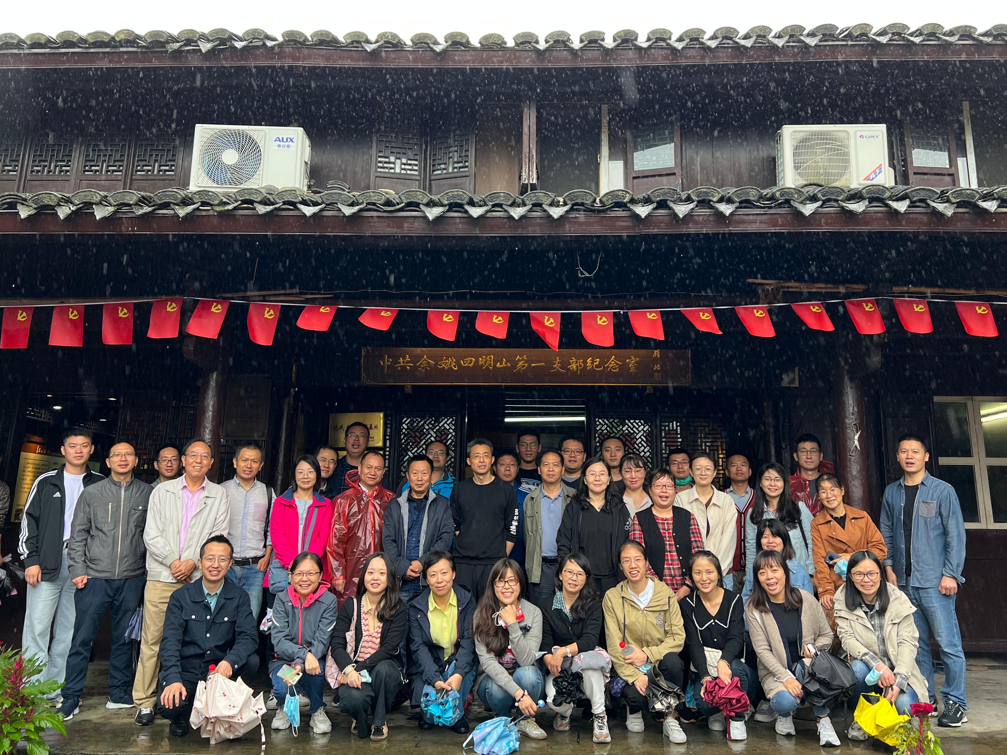 教工党员在中共余姚四明山第一支部纪念室前合影留念