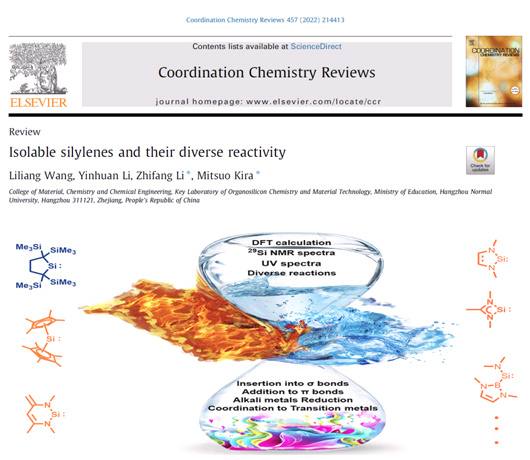 论文以“Isolable silylenes and their diverse reactivity”为题发表在《Coordination Chemistry Reviews》(IF: 22.315)。该期刊是Elsevier出版社旗下的顶级期刊,在化学研究领域深具影响力,被认为是化学化工领域顶级期刊之一。论文第一作者为jdb电子 青年教师王立亮博士,通讯作者为李志芳教授和吉良满夫教授,jdb电子 为第一通讯单位。论文受到国家自然科学基金(22071039和22101068)和浙江省自然基金(LY19B020007 和LQ21B020007)的资助。