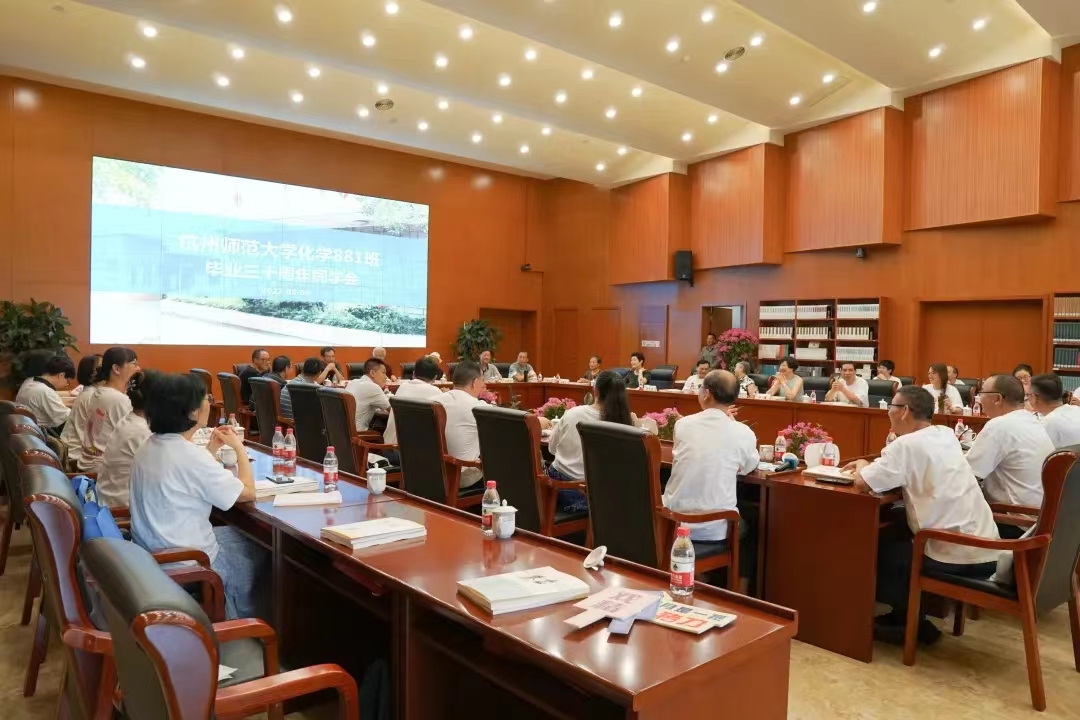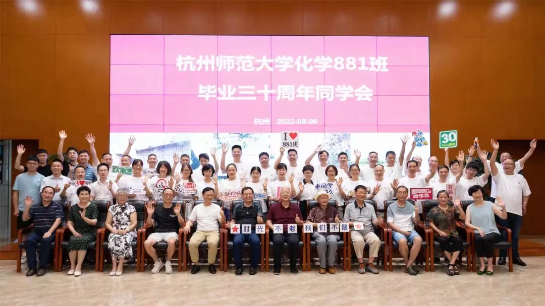 老友重逢忆旧时,殷殷求学梦飞驰。8月6日上午,jdb电子 化学881班30余名校友返回母校参加毕业30周年同学会。时任化学系主任周宁怀、化学系党总支书记左凯旋、化学881班班主任张晓露,当年任课及管理教师代表盛国定、颜立成、梁德兰、徐青、张义建、赵英辉、邱瑾,师兄弟代表浙江音乐学院副校长张伟波、阿里巴巴商学院党委书记何军,学院院长章鹏飞、党委书记江齐里、党委副书记兼纪委书记管庆江与校友、校友家属欢聚一堂,共庆毕业30周年,重温往年美好时光。同学会由化学881班校友、杭州国际城市学研究中心党组书记、主任江山舞主持。