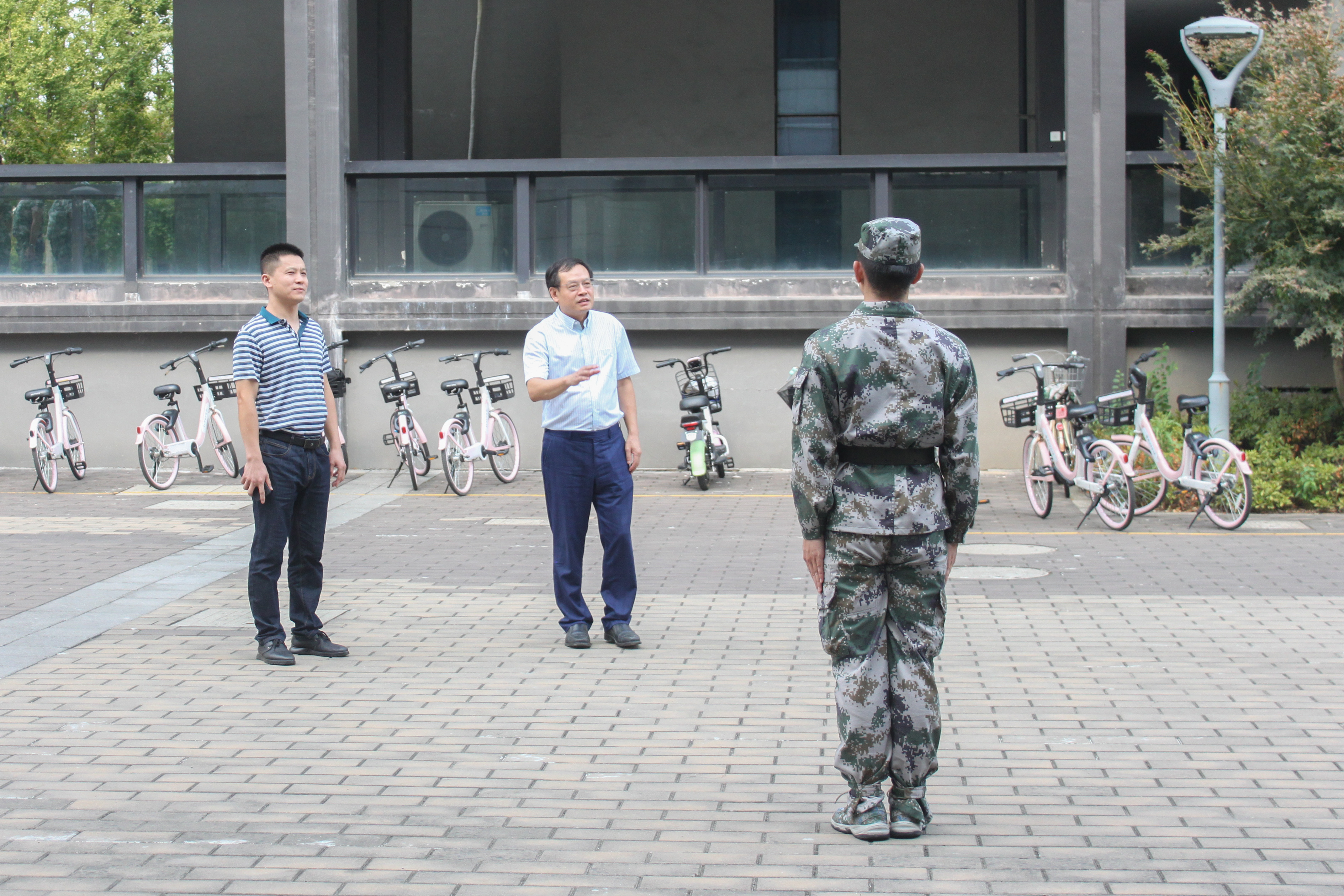 荷香习习,蝉鸣嘶嘶。8月25日下午15:30,学院院长章鹏飞,党委副书记兼纪委书记管庆江,学工办主任、团委书记张楚黛到jdb电子 军训场地慰问军训学生。