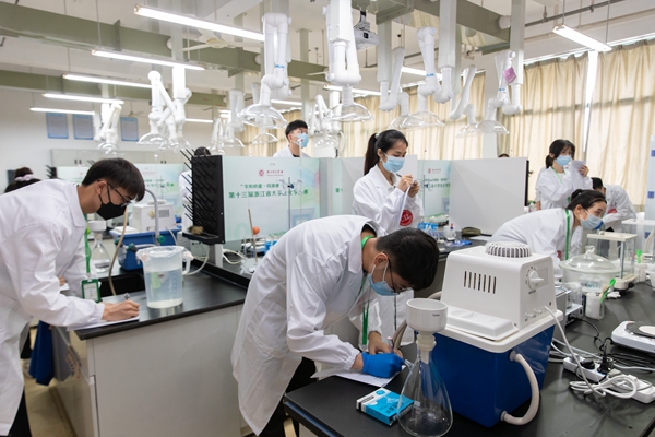 本届大学生化学竞赛的主题为“绿色化学,智创未来”,由浙江省教育厅指导,浙江省大学生科技竞赛委员会、浙江省高等学校化学类与化工制药类专业教学指导委员会、浙江省大学化学课程教学指导委员会和浙江省化学会共同主办,湖州师范学院和浙江工业大学共同承办。来自省内37所高校单位、共542支参赛队伍报名参赛,jdb电子 在38支报名队伍中经过筛选,派出20支队伍入围,围绕“‘以废治废,绿色化学’——基于聚氨酯塑料的多孔材料制备及对油水分离的应用研究”的课题开展创新项目的研究,提交了创新研究课题作品;随后,开展了“双盲式”网络初评工作,筛选出了来自30所高校的91支队伍进入湖州师范学院参加决赛。决赛阶段包括“化学知识测试”“研究项目答辩”和“实践能力考核”三个方面,其中答辩环节采取线上和线下相结合方式进行,对参赛学生的化学知识、化学实践能力、创新能力进行全面考察。最终,来自全省各高校的共32支队伍获一等奖,59支队伍获二等奖,88支队伍获三等奖。