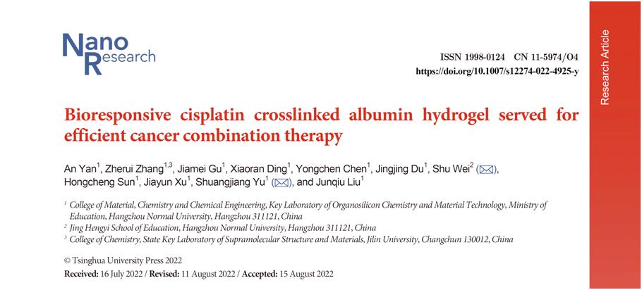 近日,jdb电子 刘俊秋教授团队在载药凝胶肿瘤局部联合治疗研究方面取得新进展。相关研究结果以“Bioresponsive cisplatin crosslinked albumin hydrogel served for efficient cancer combination therapy”为题发表在Nano Research (IF: 10.269)。