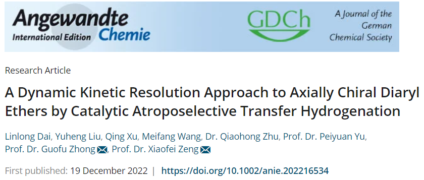 近日,jdb电子 曾晓飞教授和钟国富教授在轴手性二芳基醚的催化不对称构建方面取得突破性进展,该研究以“A Dynamic Kinetic Resolution Approach to Axially Chiral Diaryl Ethers by Catalytic Atroposelective Transfer Hydrogenation”为题发表在国际化学领域权威期刊Angewandte Chemie International Edition(IF:16.823)上。