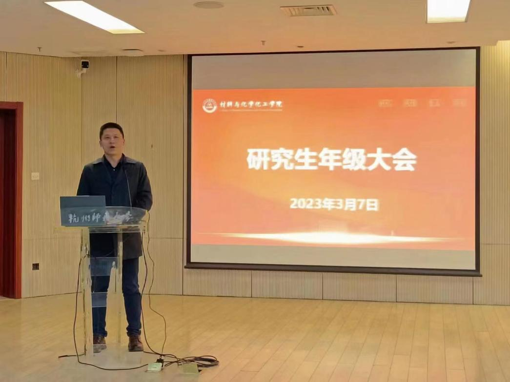 徐利文以《牢记“三个务必”,争做一名优秀研究生》为题为全体研究生做了一场精彩报告,从“国家过去五年的工作和新时代十年的伟大变革、开辟马克思主义中国化时代化新境界、新时代新征程中国共产党的使命任务、加快构建新发展格局着力推动高质量发展、实施科教兴国战略强化现代化建设人才支撑”等方面,结合党史和校史,对党的二十大精神进行了详细解读,并带领同学们学习了习近平总书记对研究生教育工作作出的重要指示、2023政府工作报告和雷锋精神。结合个人成长经历,他从“优秀研究生的基本特质、化学或材料领域研究生的注意事项和心理素质”等方面为如何成为一名优秀研究生指明了成长路径,强调研究生应该具备不畏困难和坚忍不拔的斗争精神,牢记“三个务必”,提高科技创新综合实力,立志做有理想、敢担当、能吃苦、肯奋斗的新时代高层次人才,为实现中华民族伟大复兴贡献自己的青春和智慧。