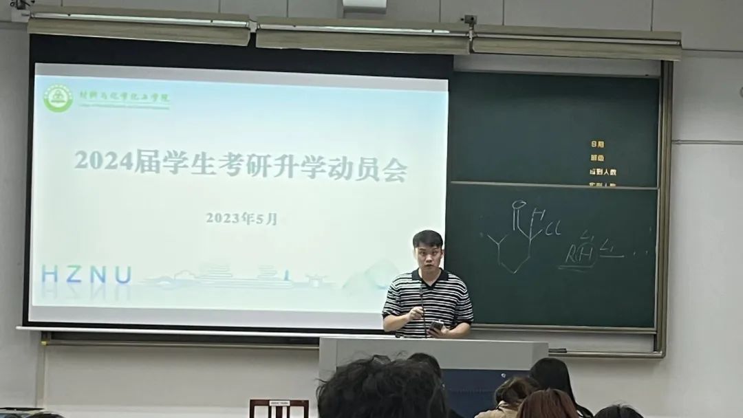 为进一步激发jdb电子 2024届专升本学生的考研热情,帮助学生深入了解考研相关内容,助其实现考研升学梦,5月17日下午,jdb电子 在下沙校区B-114召开2024届专升本学生考研升学动员会。学院党委副书记兼纪委书记管庆江、应化222班班主任杨雄发、应化223班班主任尹官武以及4位2023届优秀考研上岸学生代表应邀出席动员会。动员会由分管辅导员任浩浩主持。
