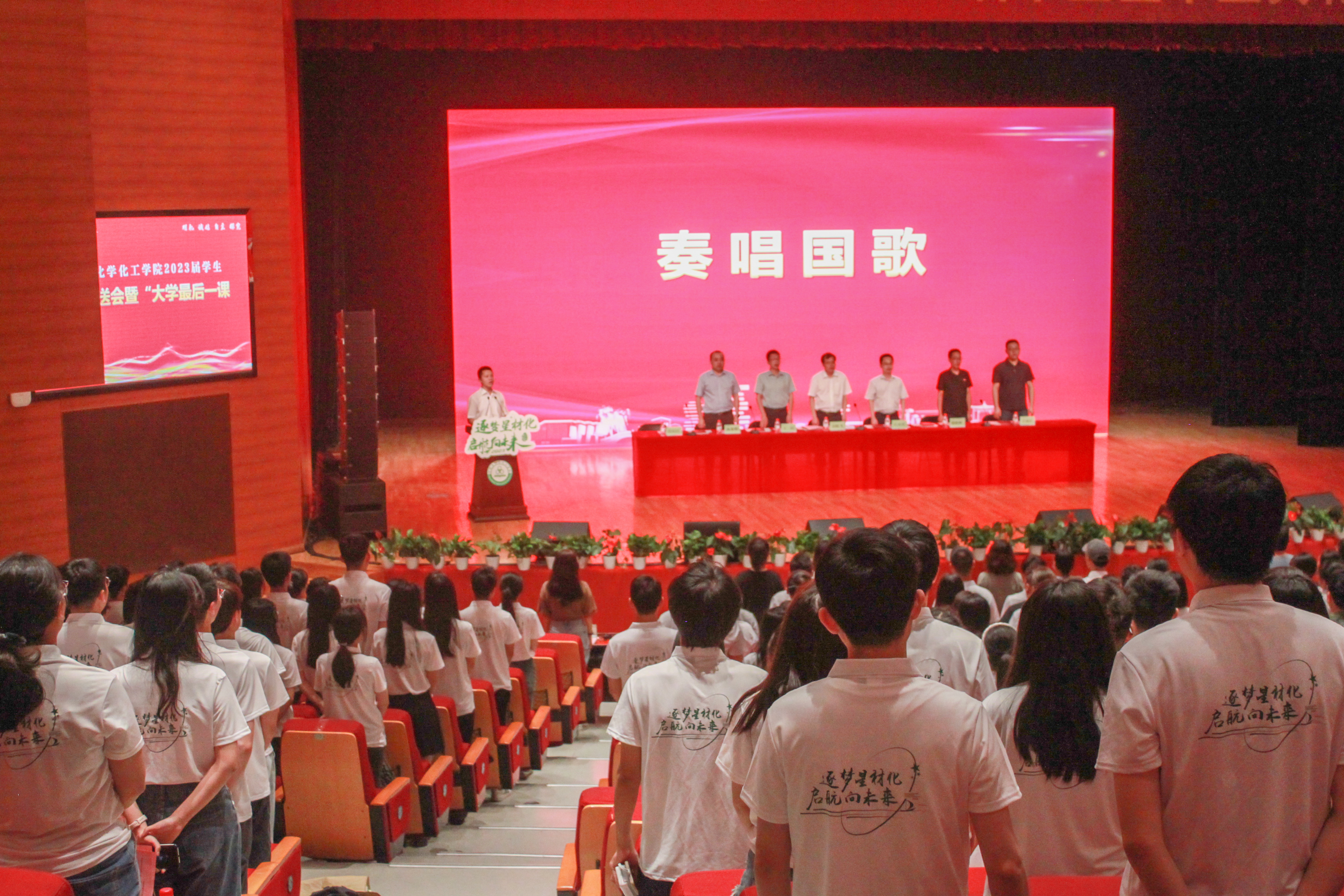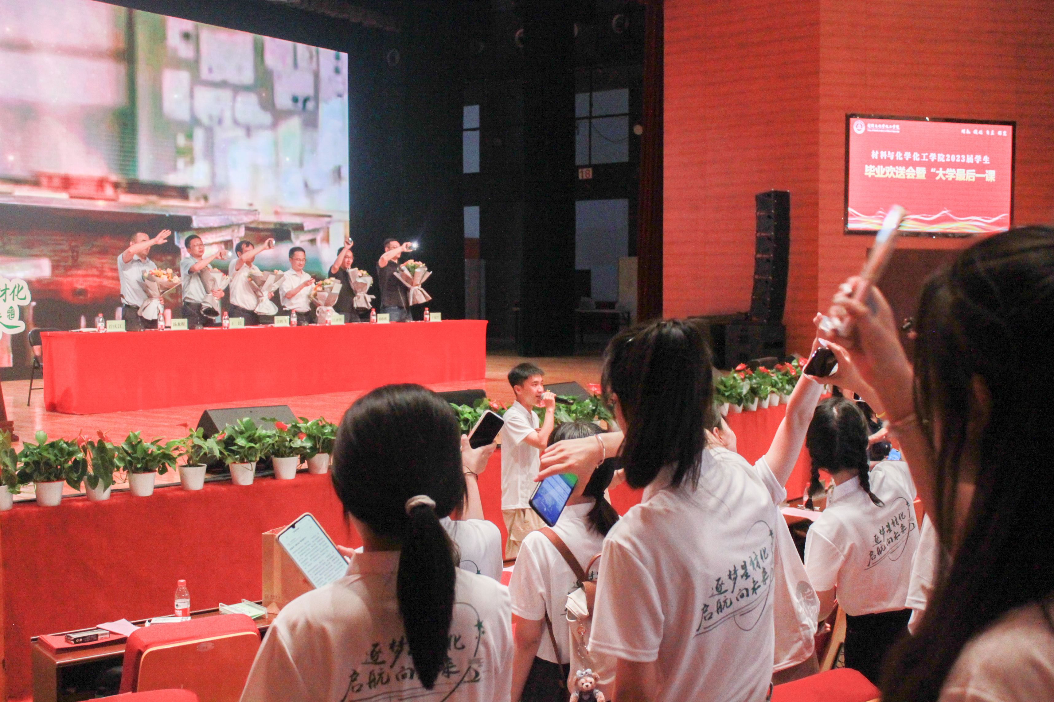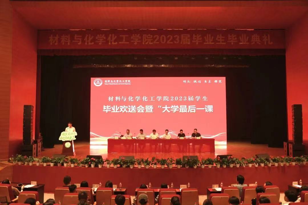 2023年6月12日下午,jdb电子 于仓前校区梦非剧场隆重举行2023届毕业生欢送会暨“大学最后一课”。学院院长章鹏飞,党委书记江齐里,副院长王民,党委副书记兼纪委书记管庆江,化学系主任邵欣欣,化工系主任汤龙程,高分子系主任于双江,全体毕业班班主任,研究生导师代表,行政教辅人员和全体2023届本研毕业生参加本次活动。活动由管庆江主持。