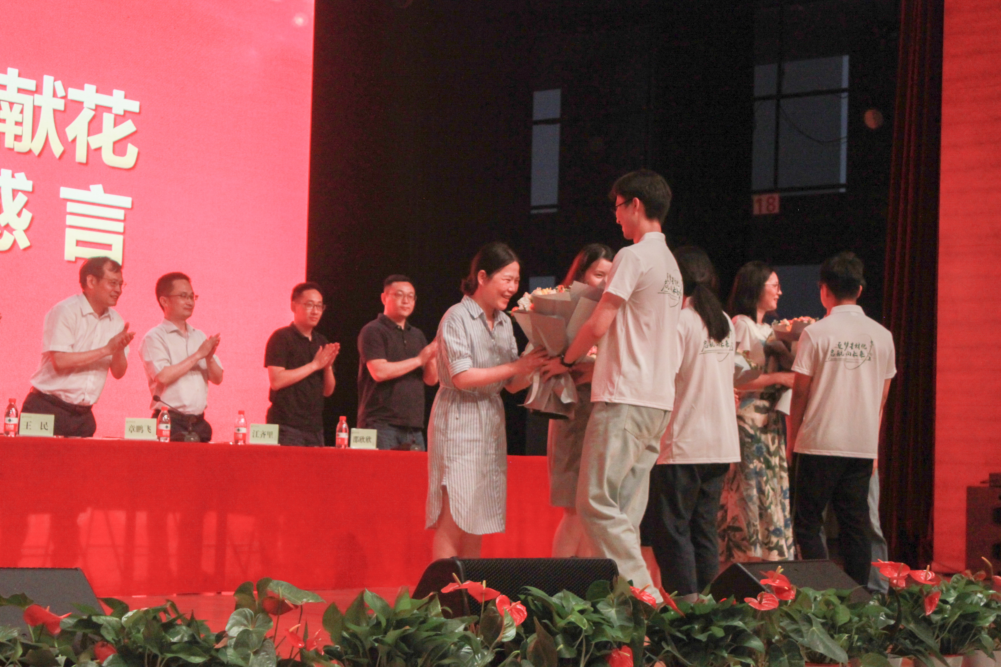 师者如光,桃李成蹊。学院老师们用爱与责任照亮着同学们一路前行,现场毕业生代表进行献花仪式。一声谢谢、一束鲜花、一个拥抱,感恩之情蕴于花香,溢于言表。
