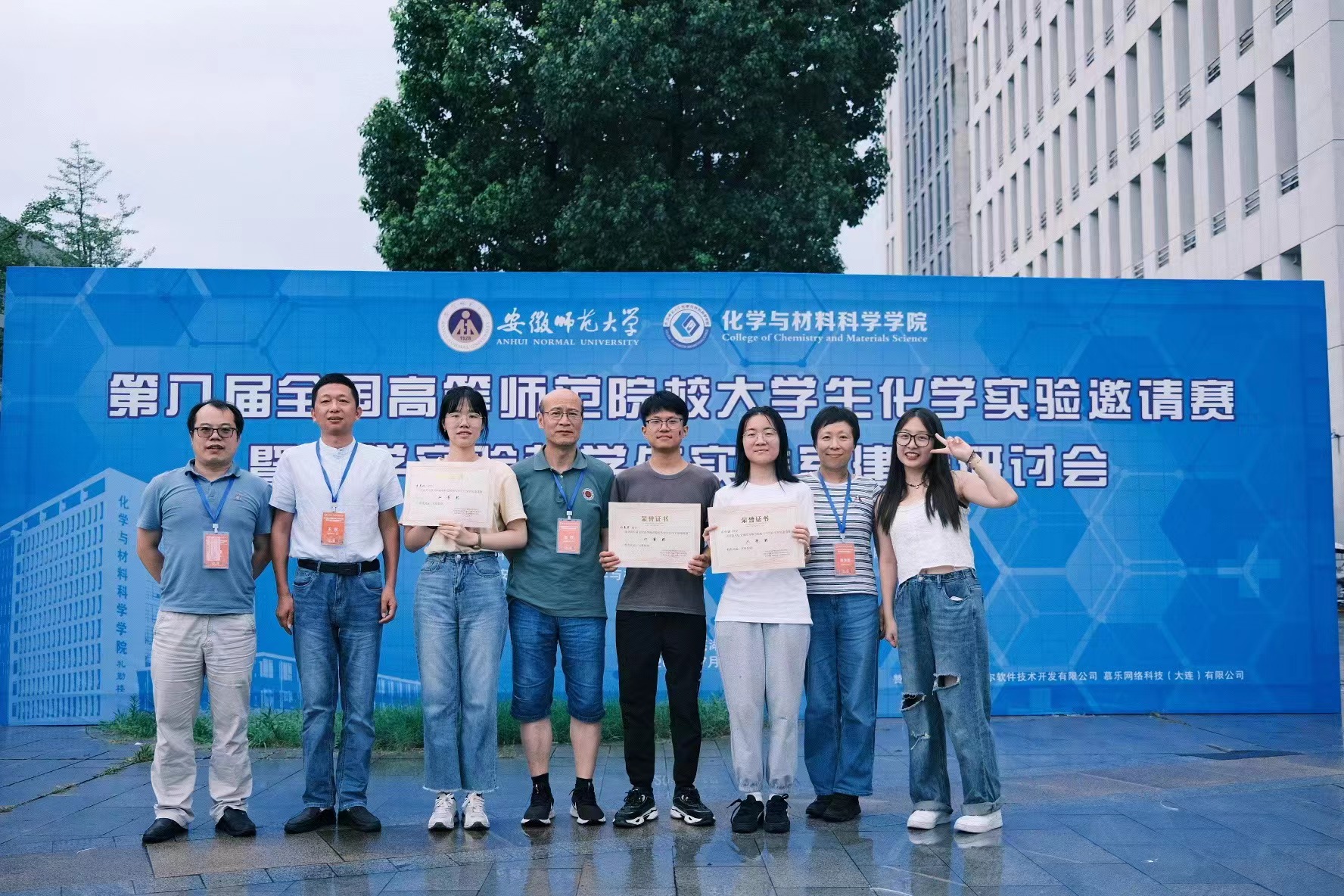 2023年7月14日-16日,第八届全国高等师范院校大学化学实验邀请赛在安徽师范大学举行。本次赛事邀请到来自全国44所高校,近300名师生齐聚一堂。其中代表jdb电子 参赛的3位选手经过两天紧张的实验操作考试和实验理论笔试,喜获佳绩:许豪男荣获一等奖,李晨瑶获得二等奖,冯欣源获得三等奖。