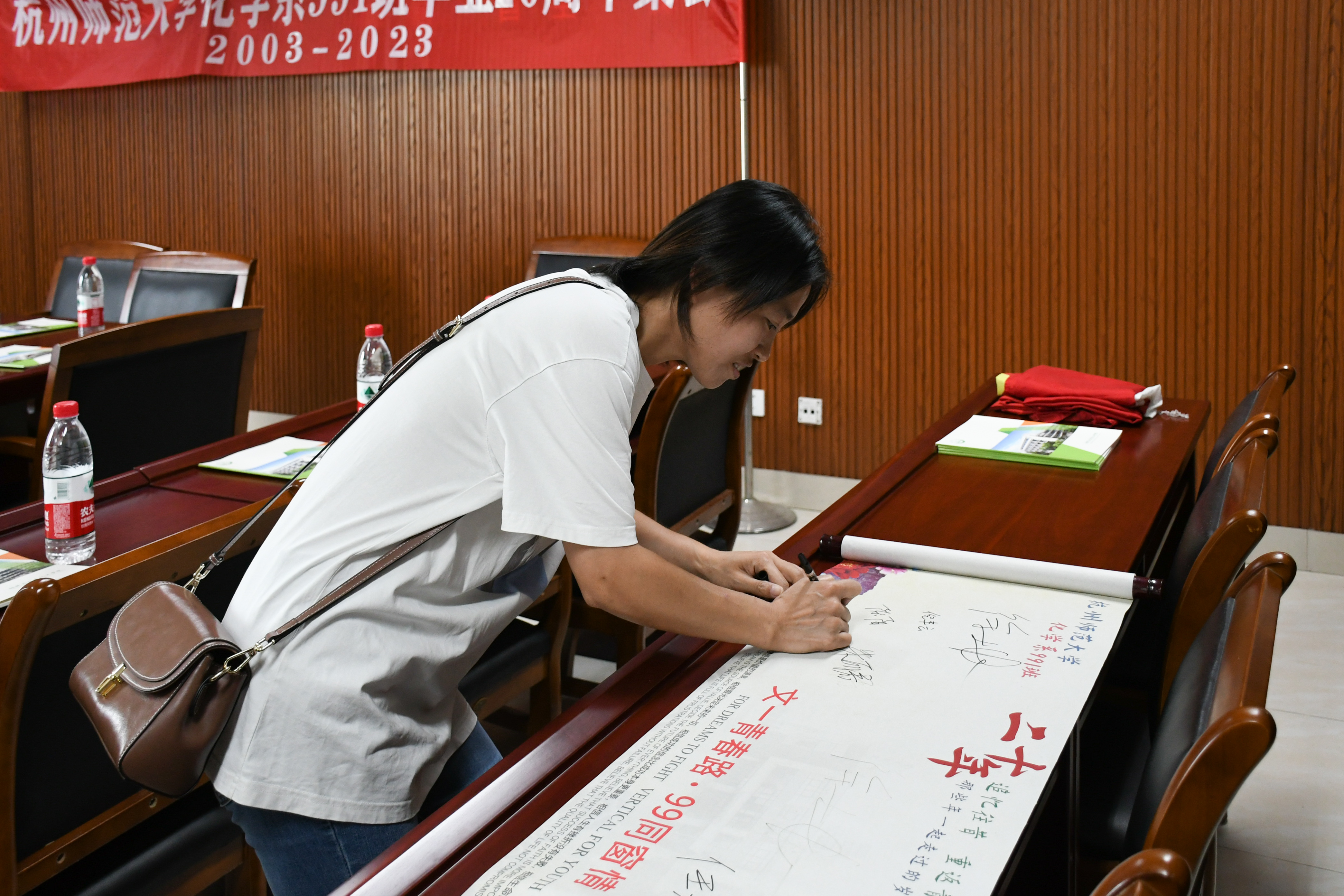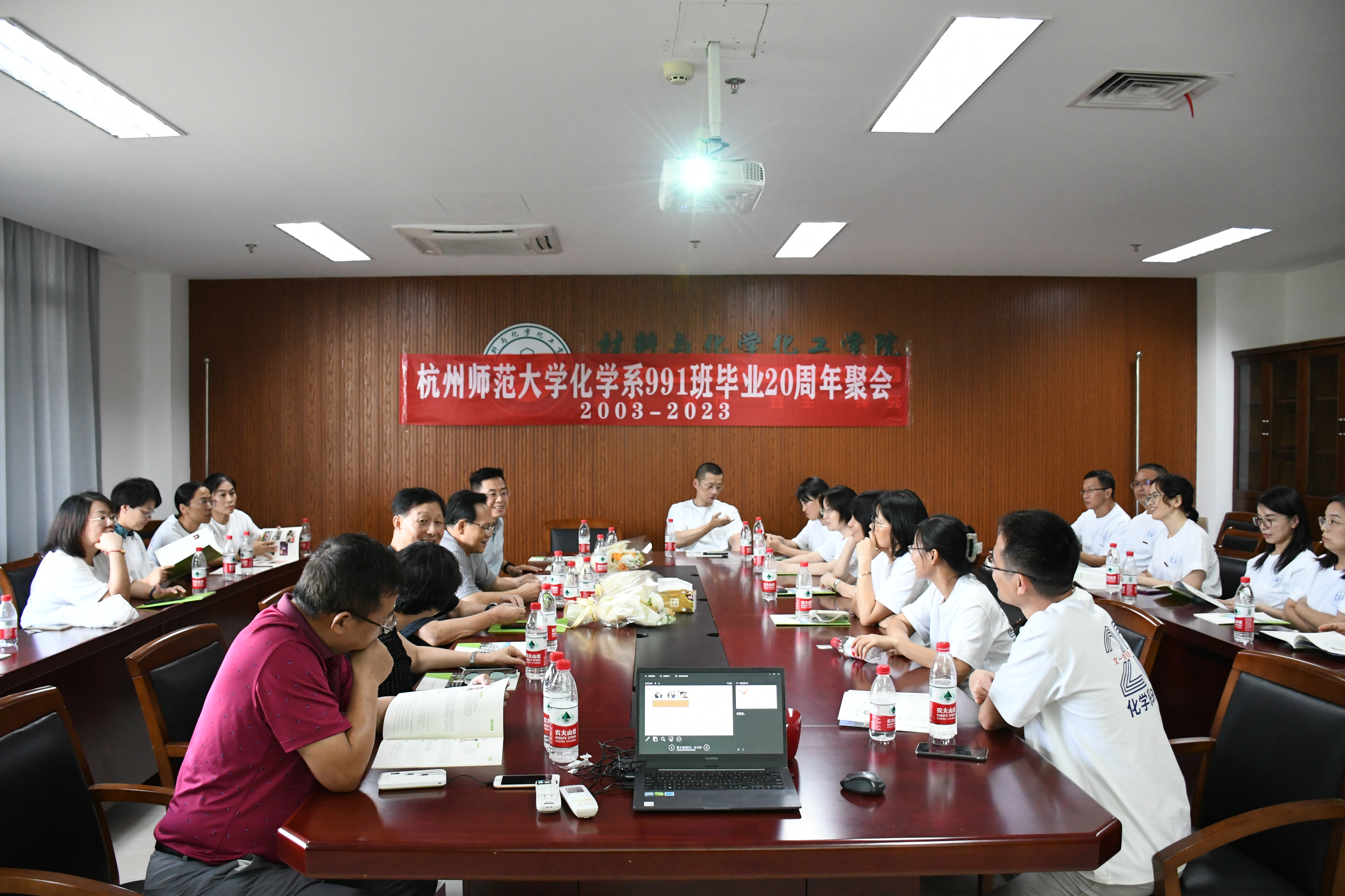 金秋飒爽,丹桂飘香,喜逢国庆。10月1日下午,jdb电子 化学991班二十余位校友欢聚仓前校区,举办“青春路 同窗情”毕业二十周年同学会。校友们重回母校、重聚材化,跨越时间长河,再叙师生情谊,同谋母校发展,重温师大岁月。时任化学系主任盛国定、化学991班班主任徐土根,时任年级辅导员、阿里巴巴商学院党委书记何军,任课教师代表邱瑾、刘金华,学工办主任兼学院校友工作联络员韩秉峻等热情接待了校友们。活动由化学991班校友、杭州市萧山区第二高级中学副校长任瀚旻主持。