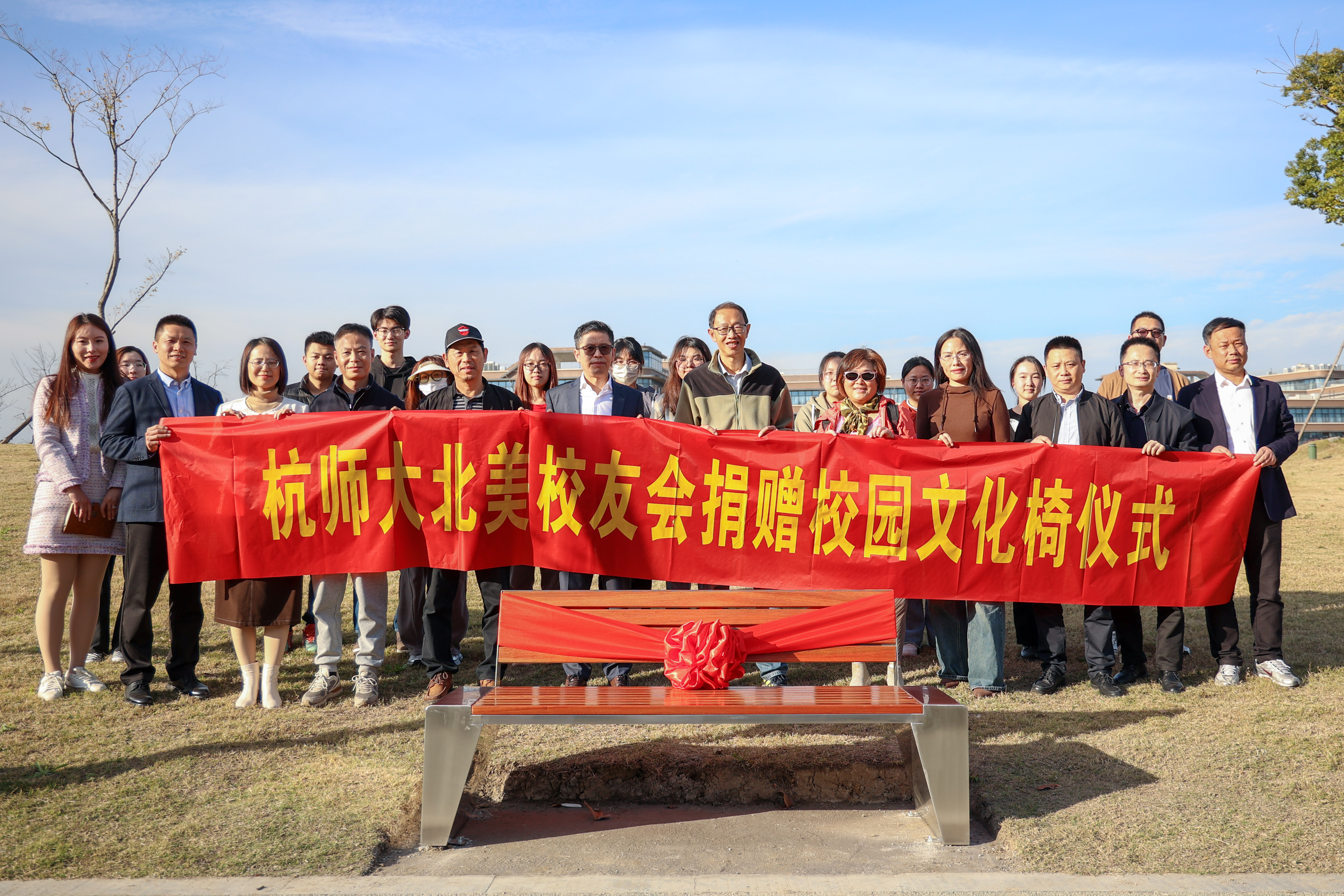 会前,学校在余杭塘河边游步道还进行了北美校友会校园文化椅捐赠仪式,副校长胡华和北美校友会代表金富强、单利荣、孙爱民(1984届数学专业校友、北美校友会理事、加拿大校友会会长)共同为北美校友会捐赠的文化椅揭幕,联络办(校友办)、宣传部、科研处、公管与建设处、jdb电子 有关负责人陪同参加。本次投放的30张文化椅是北美校友会心系母校、感恩母校、回馈母校的一次实际行动,为校园增加了一道美丽的风景线,为师生提供更加便利舒适的休息和交流空间。