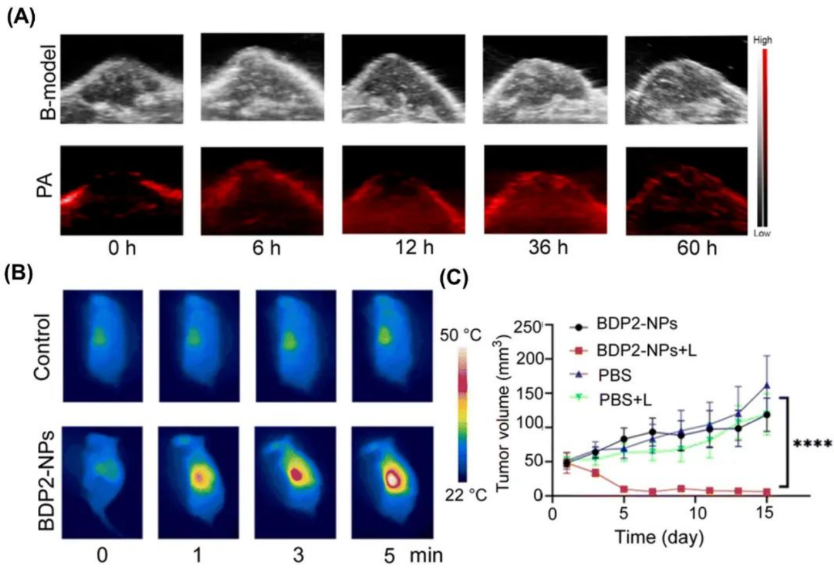 图2. BDP2 NPs用于荷瘤小鼠的成像与光热治疗